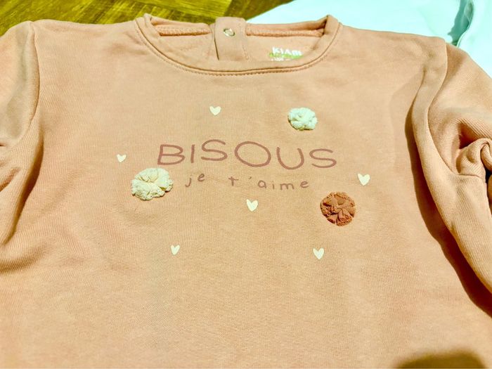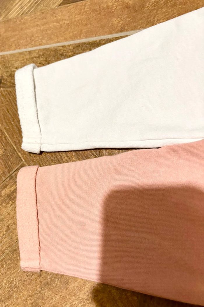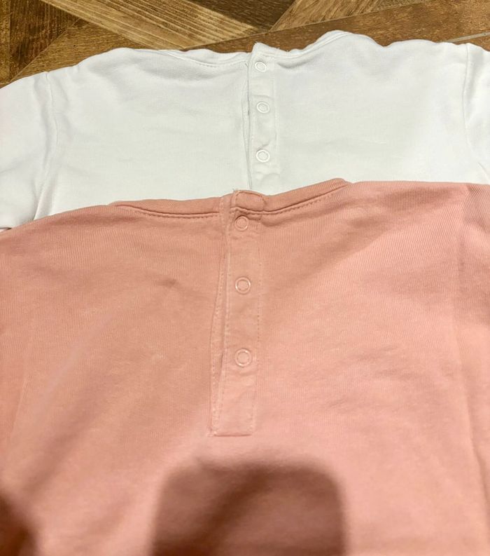 Un pull blanc et un vieux rose Détails pompoms en reliefs Pressions au dos Revers aux manches En coton biologique Taille: 36 mois - 3 ans Marque: Kiabi Quasiment pas portés, en parfait état sauf une petite tâche sur le blanc (cf photo) Convient aux jumelles