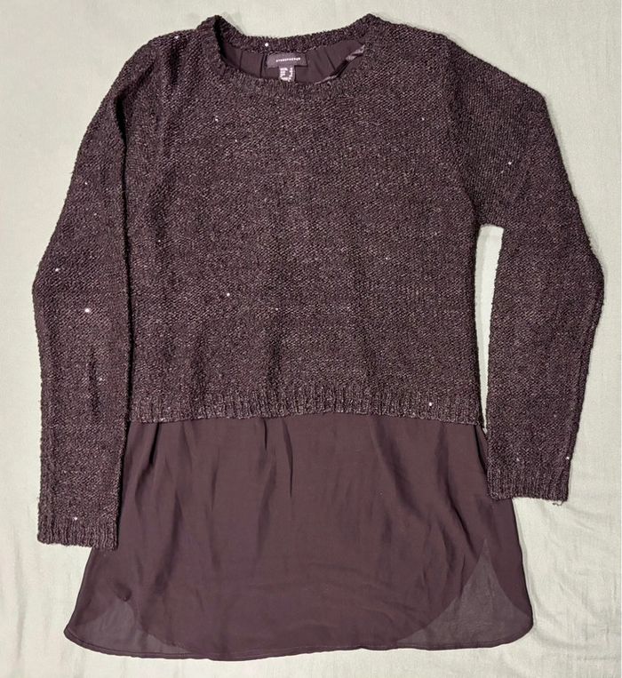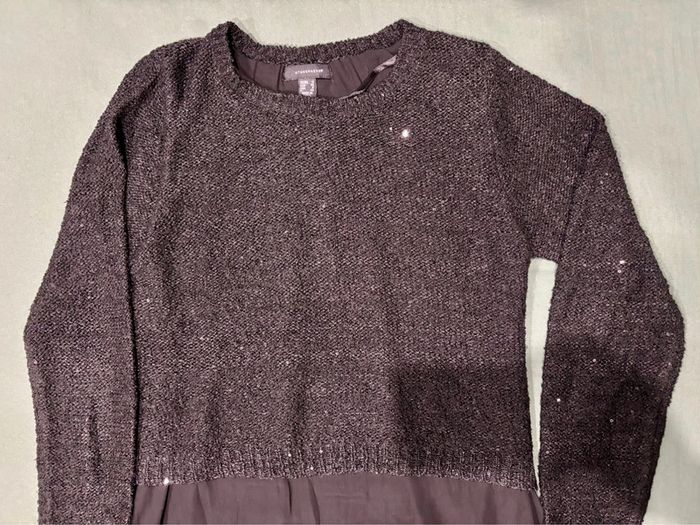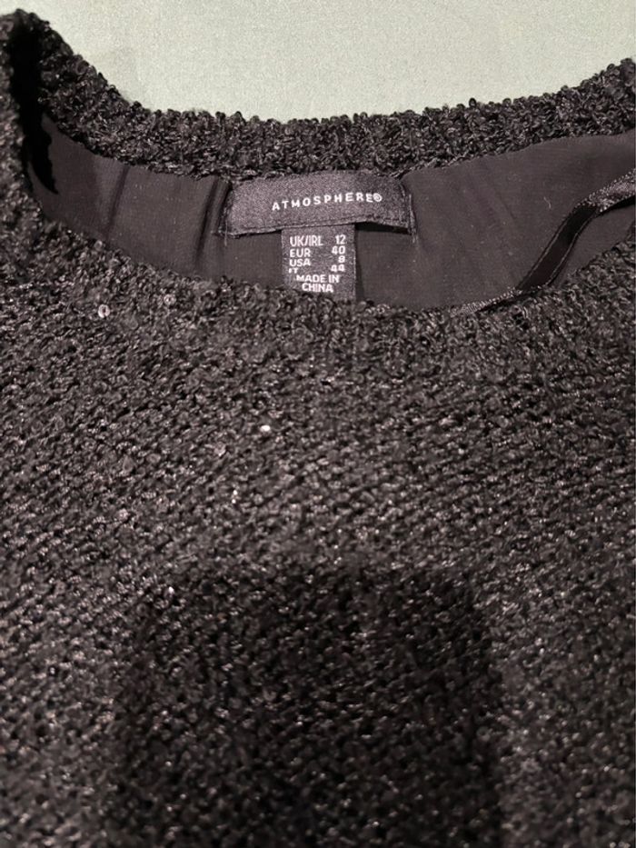 Pull noir en maille avec sequins brillants Voilage noir légèrement transparent sur le bas Taille: 40 Marque: Atmosphère