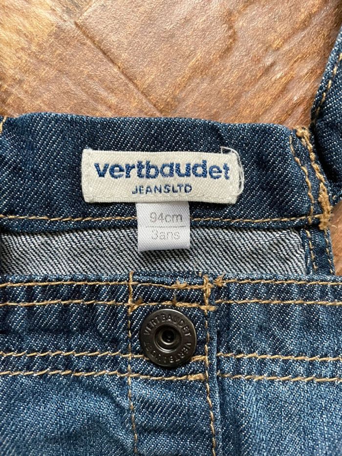 Robe salopette en jean couleur brut Bretelles réglables et pressions sur les côtés Taille: 3ans / 94cm Marque: Vertbaudet Parfait état