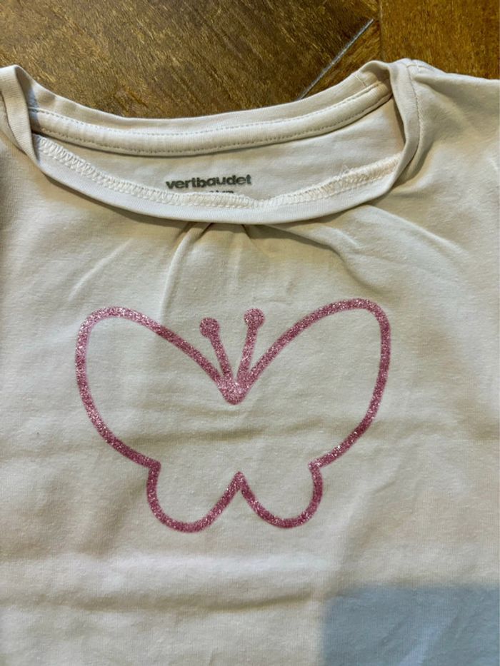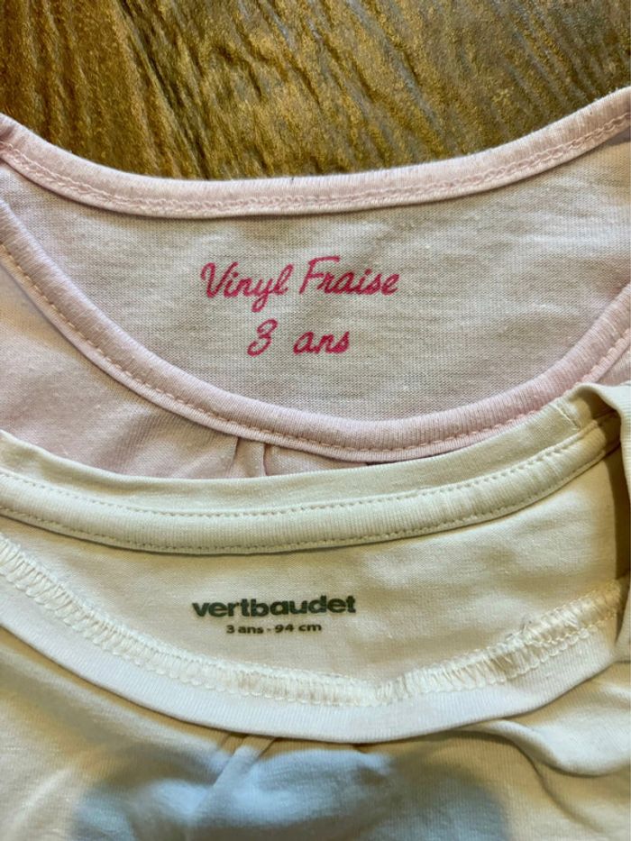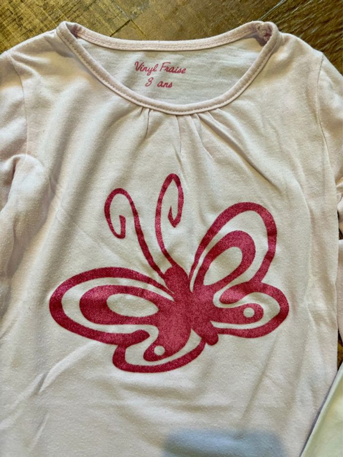 Deux hauts rose clair motifs papillons Taille: 3 ans Marque: Vinyl Fraise et Vertbaudet Convient aux jumelles