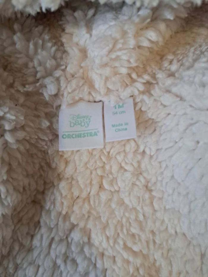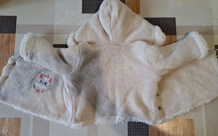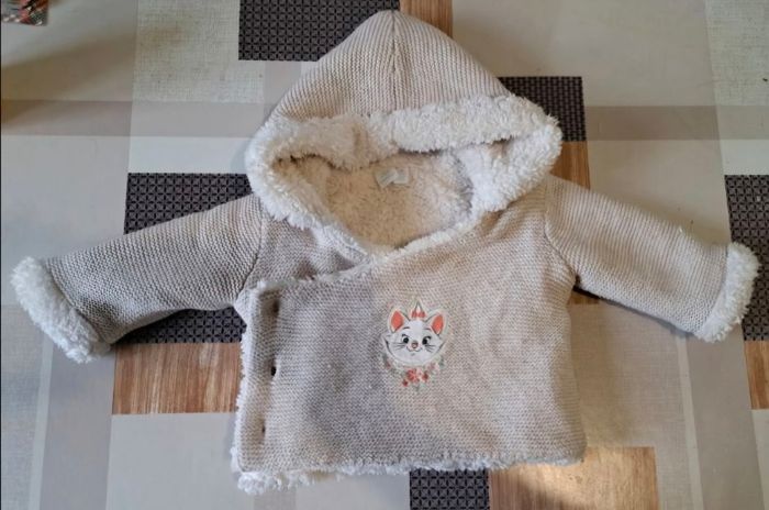 Veste en tricot doublure polaire avec patch marie disney pour bébé fille beige et blanc, taille 1mois de la marque Disneybaby by orchestra en très bon état. Matière : 70%coton et 30%Nylon. Réductions de lots activé. jusqu'à-50%.😉 Envoie rapide dans les 24h ➡️ 📦