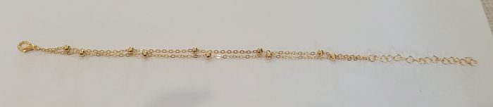 Chaine De Cheville double rang boules coloris doré. Chaine de cheville coloris doré avec petites boules , double rangée . Longueur 21 cms + 5 cms de chainette réglable. Chaine neuve sous blister. N'hésitez pas à regarder mes autres ventes. Envoi rapide et soigné