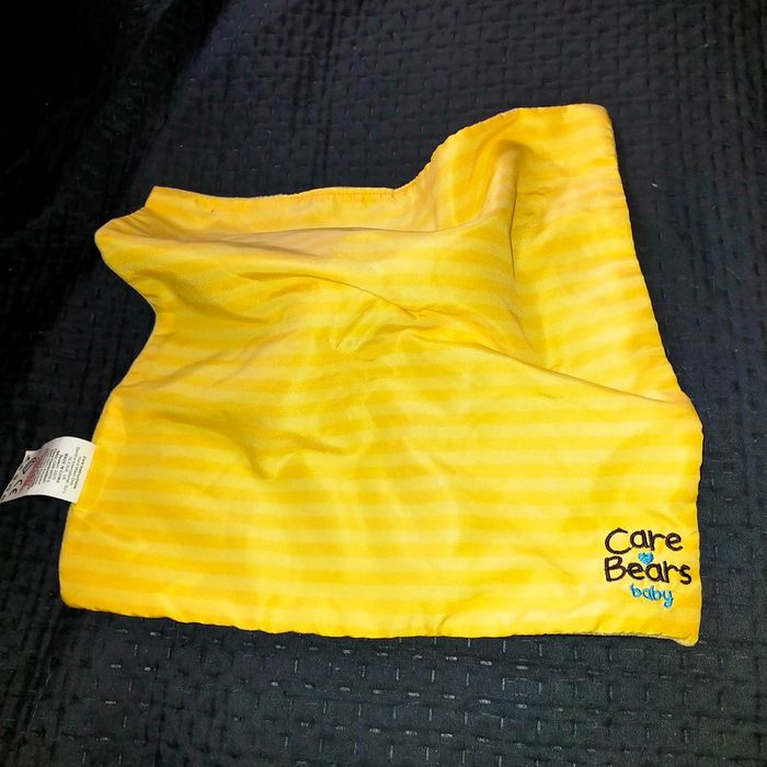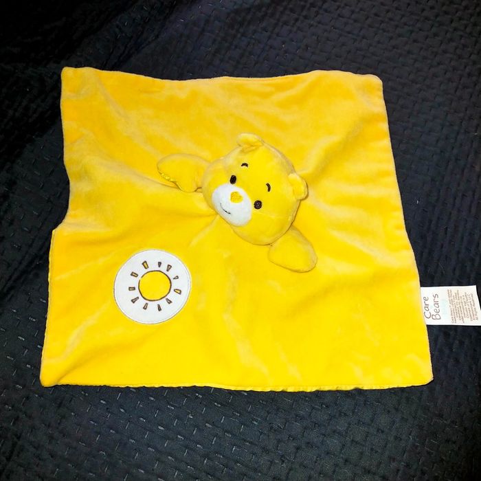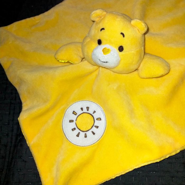 Doudou Ours Bisounours CARE BEARS baby carré plat jaune soleil #plaisirdoffrir #lot #doudou #doudoulot #bisounours