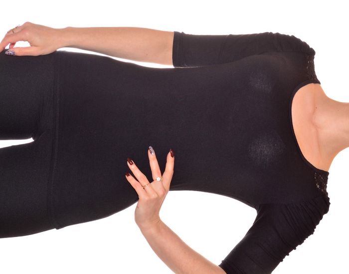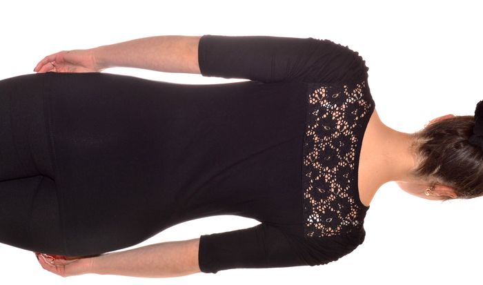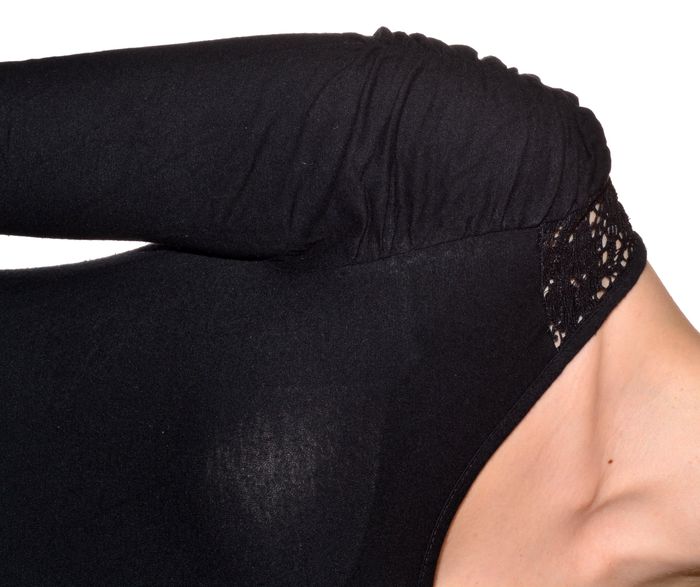 tshirt manches 3/4 noir uni fronces aux épaules, dos dentelle taille S ajusté col rond - photo numéro 7