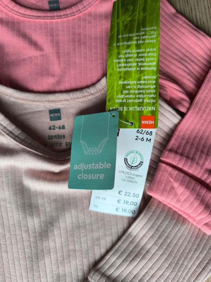 Lot de bodies évolutif côtelé Hema / rose / taille 2-6 mois 62/68 cm - photo numéro 1
