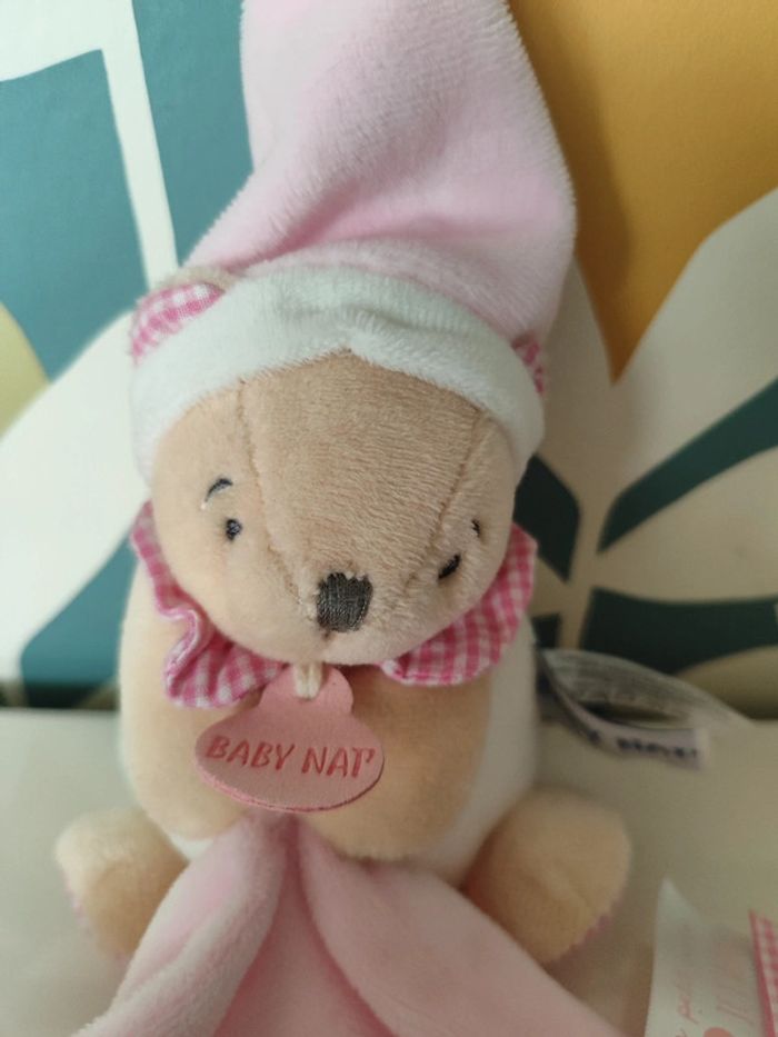 Doudou ourson nounours ours rose mouchoirs baby nat - photo numéro 6