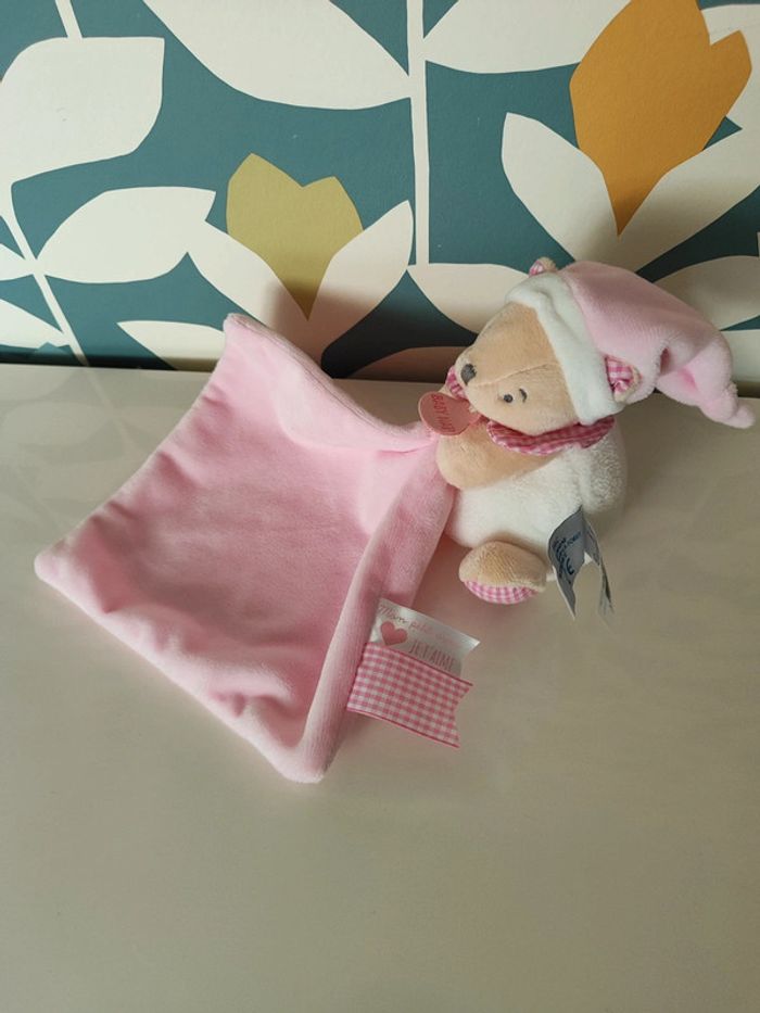 Doudou ourson nounours ours rose mouchoirs baby nat - photo numéro 1