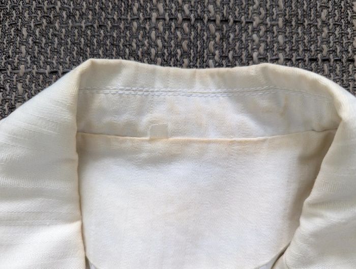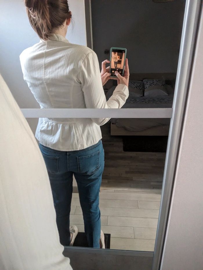 Veste blanche Col intérieur jauni mais ne voit quand c'est porté 100% coton Taille 38