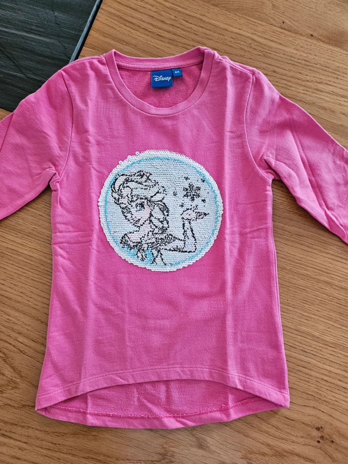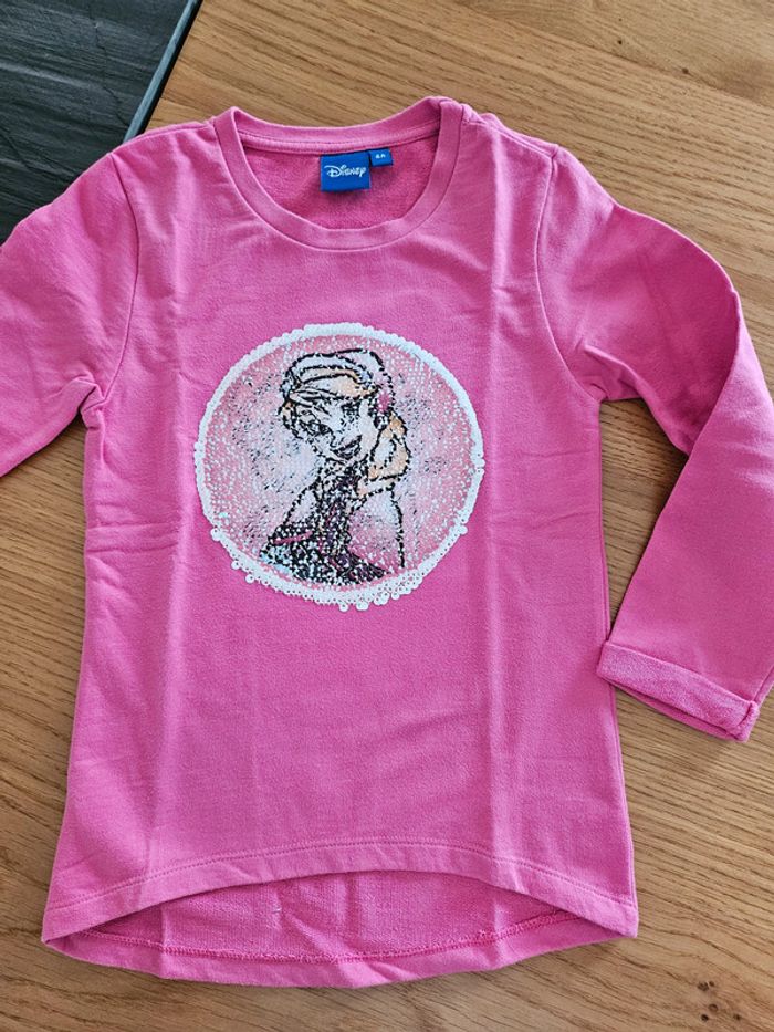 Sweat fin rose avec sequins réversibles Elsa et Anna Frozen Disney 4 ans neuf #jucan4ans