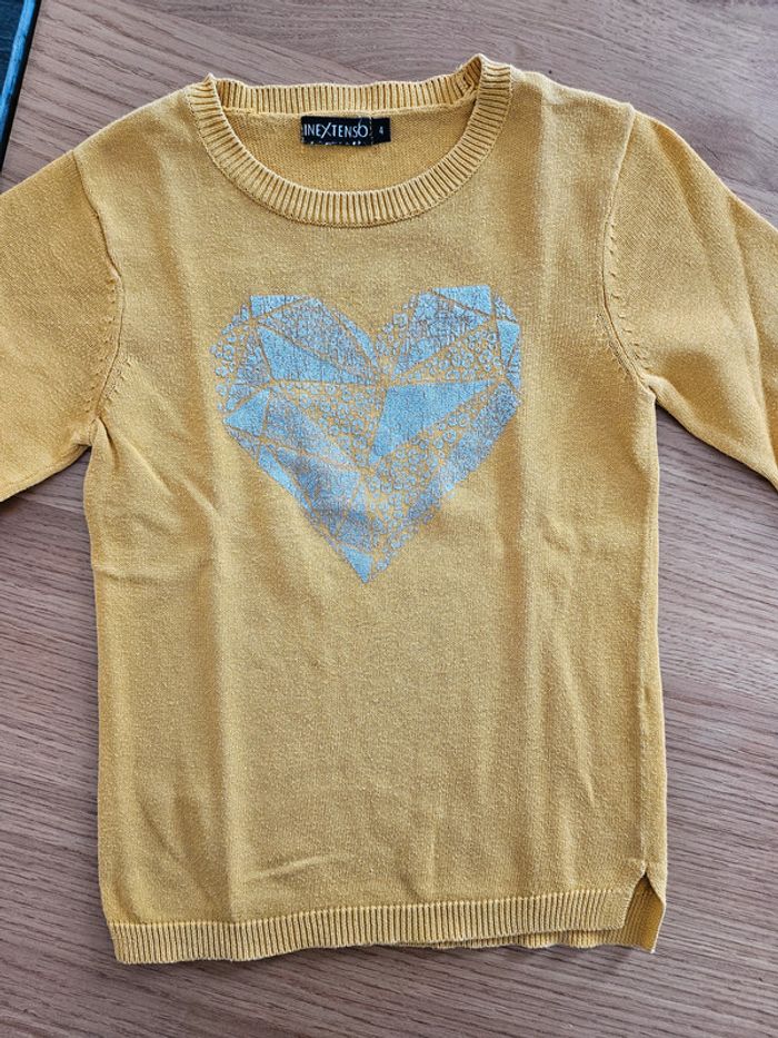 Pull fin moutarde motif cœur argenté In Extenso 4 ans #jucan4ans