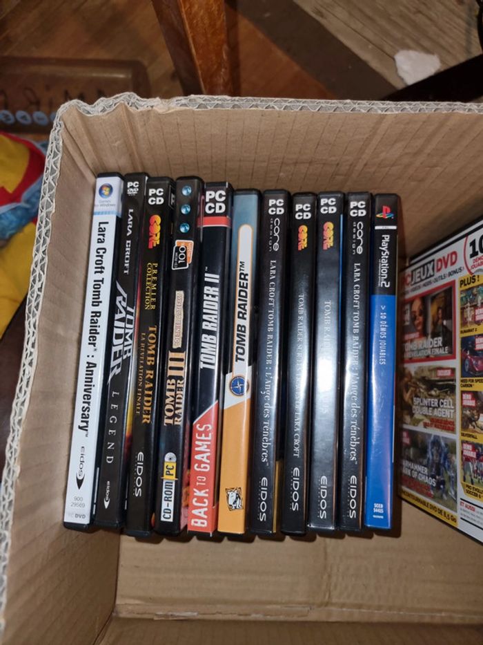 Lot de 11 jeux pc tomb raider dont la demo 90 de ps2 avec tomb raider anniversary Tomb raider chronicles Tomb raider les traces de lara croft L'ange des ténèbres Tomb raider 2 3 Premier collection la révélation finale Legend