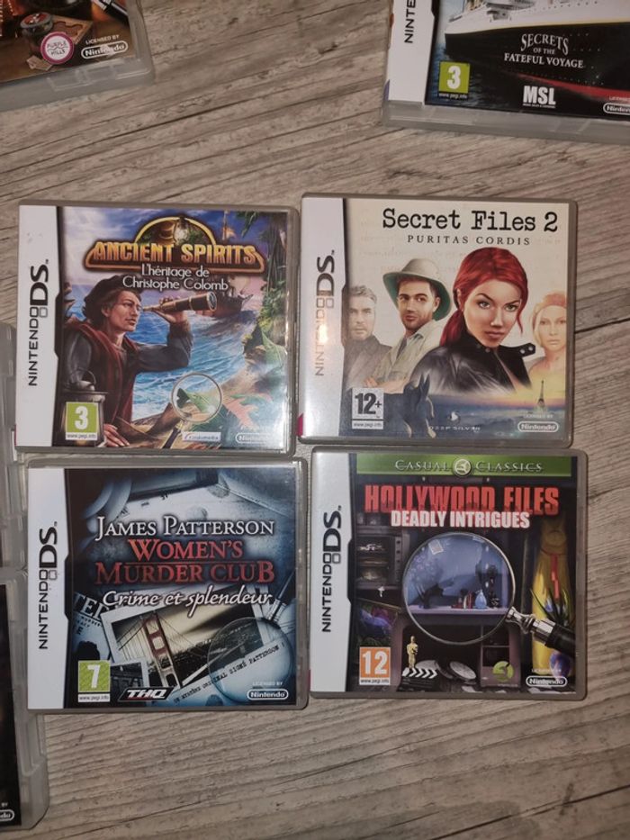 Jeux sur des mystère à résoudre sur Nintendo ds complet Secret files 2 Ancient spirits l'heritage de Christophe Colomb Hollywood files Deadly intrigues James Patterson Women's Murder Club