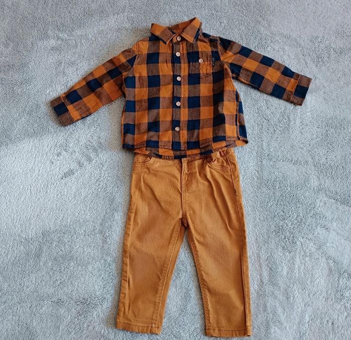 Jolie ensemble 9 état impeccable Composé comme suit -1 chemise à carreaux valeur neuve 12€99 -1 pantalon jeans marron valeur neuve 11€99 Pensez à faire des lots les remises sont activés. Dressing moderne et à petit prix.