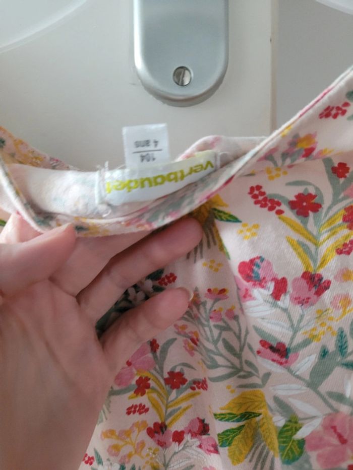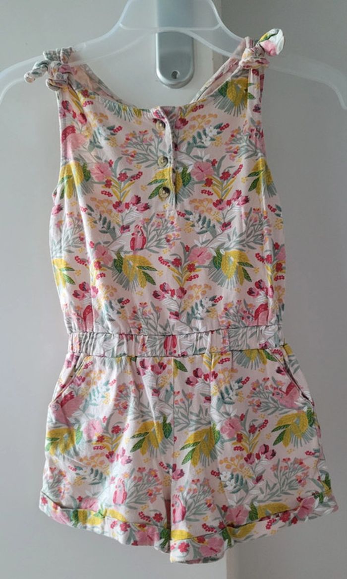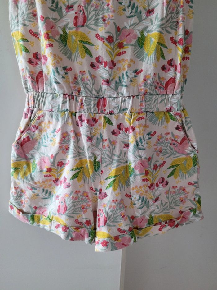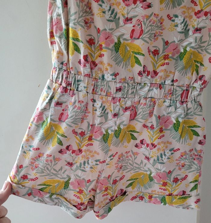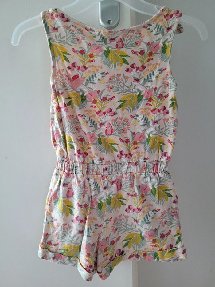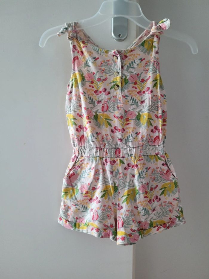 Jolie combishort fleurie, taille 4 ans - 104 cm. Marque Vertbaudet. Fond rose et motifs de fleurs. Stretch à la taille. 3 boutons sur le devant pour l'enfiler facilement. Faux nœuds sur le haut des bretelles. Ni trou ni tâche. Bon état. #T4ans_baptlily
