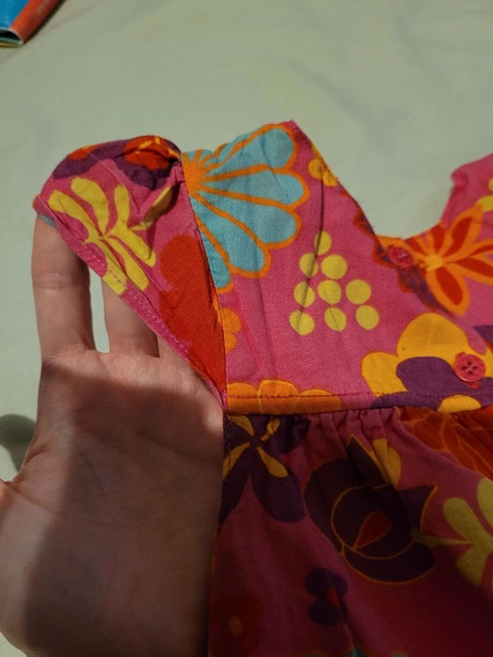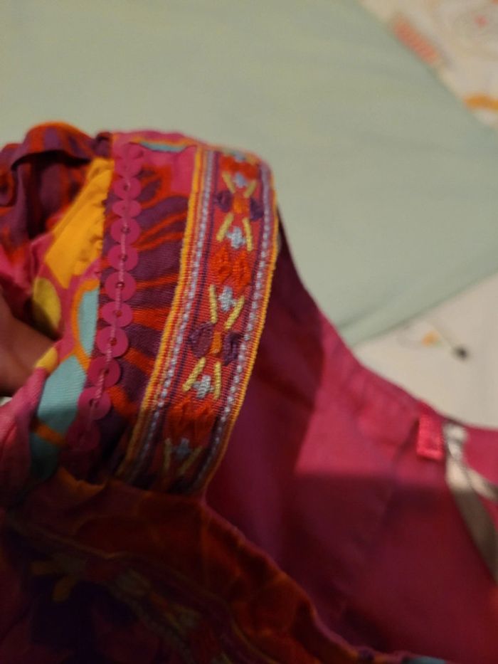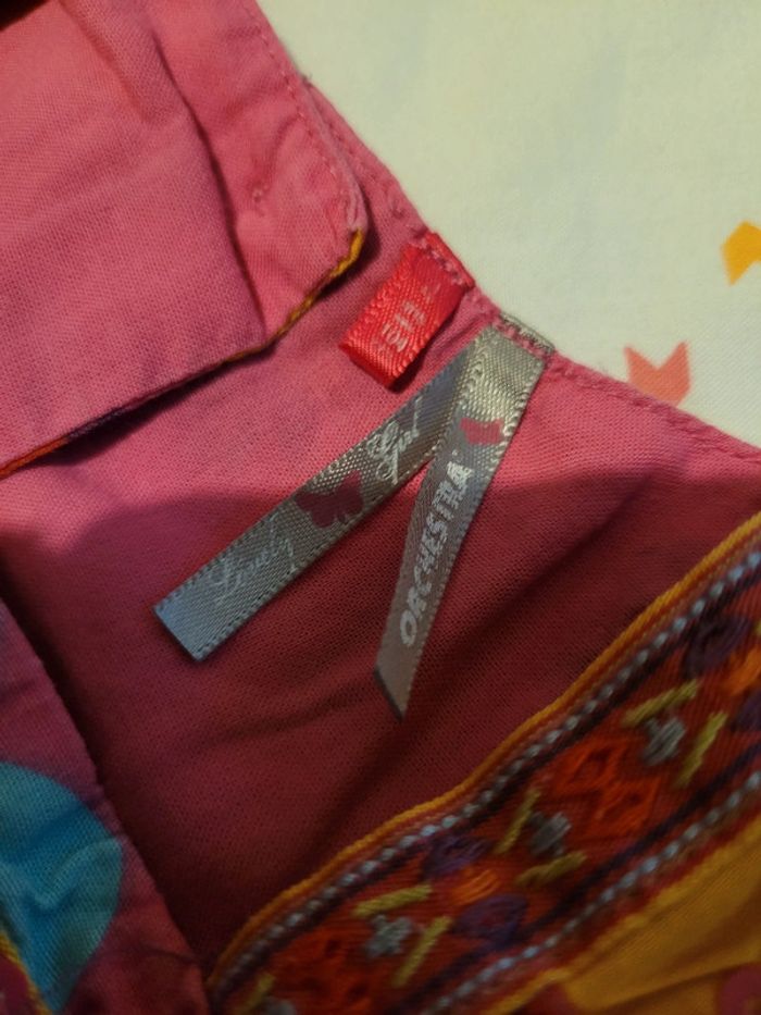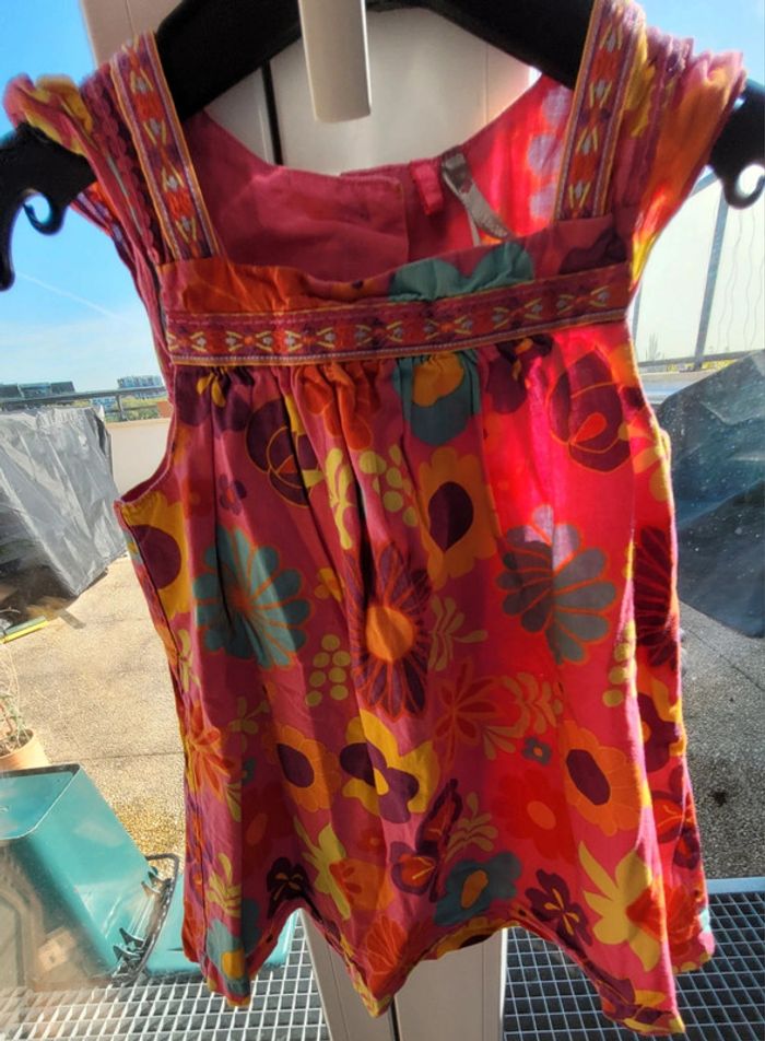 👚Très jolie blouse aux petites manches qui recouvrent juste les épaules. 🧶Couleur rose, fleurs multicolores et nombreux détails brodés ou cousus (voir les photos). Vraies couleurs sur les 1ères photos. Doublée par un tissu rose. 🧵3 boutons pour fermer la blouse + celui de rechange toujours sur l'étiquette. Blouse idéale printemps été. 🛍 Marque Orchestra taille 4ans. Très bon état. #T4ans_baptlily