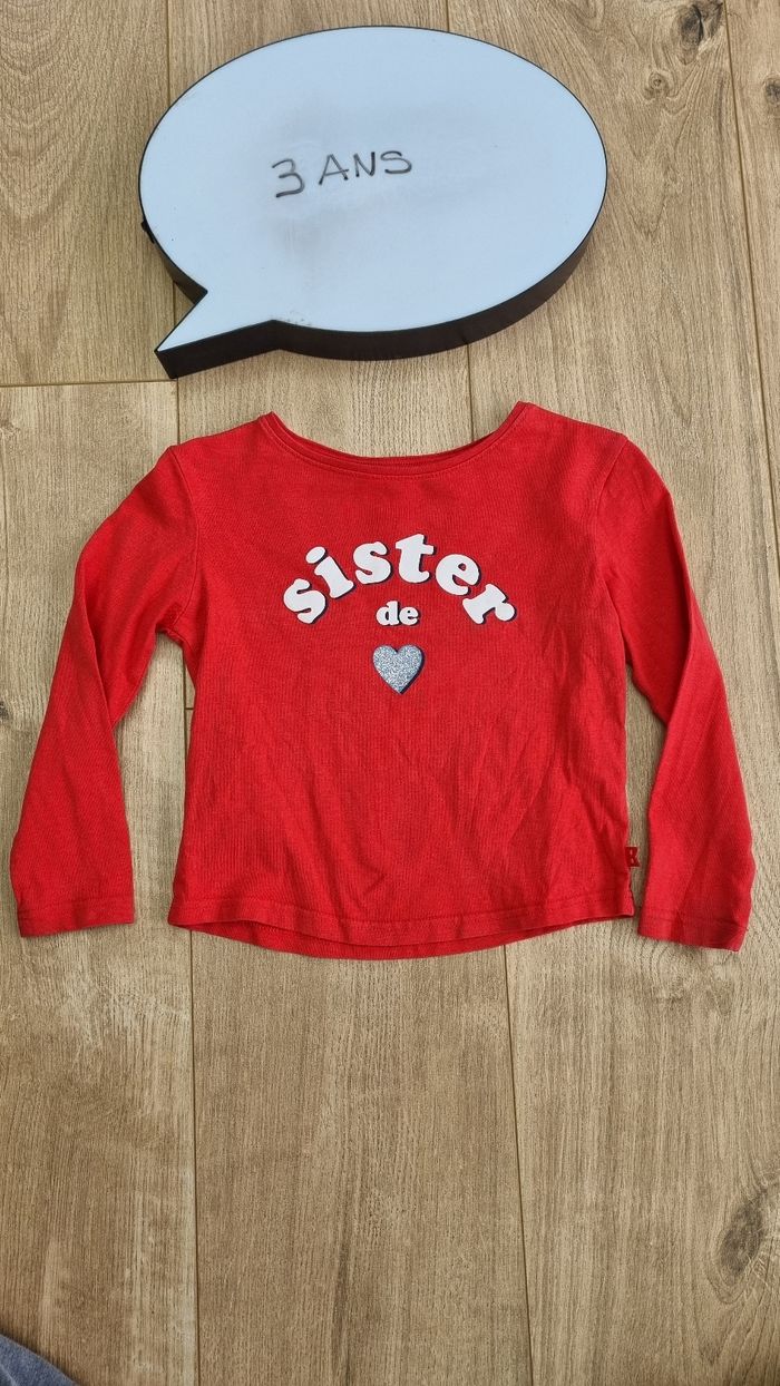 Tee-shirt 👕 manches longues pour fille 👧🏻 🎨 Rouge 📏 3 ans 📍 Inscription devant 📍 Col rond #harmonie1017fille3ans