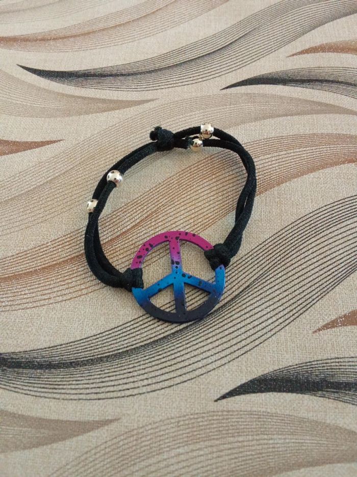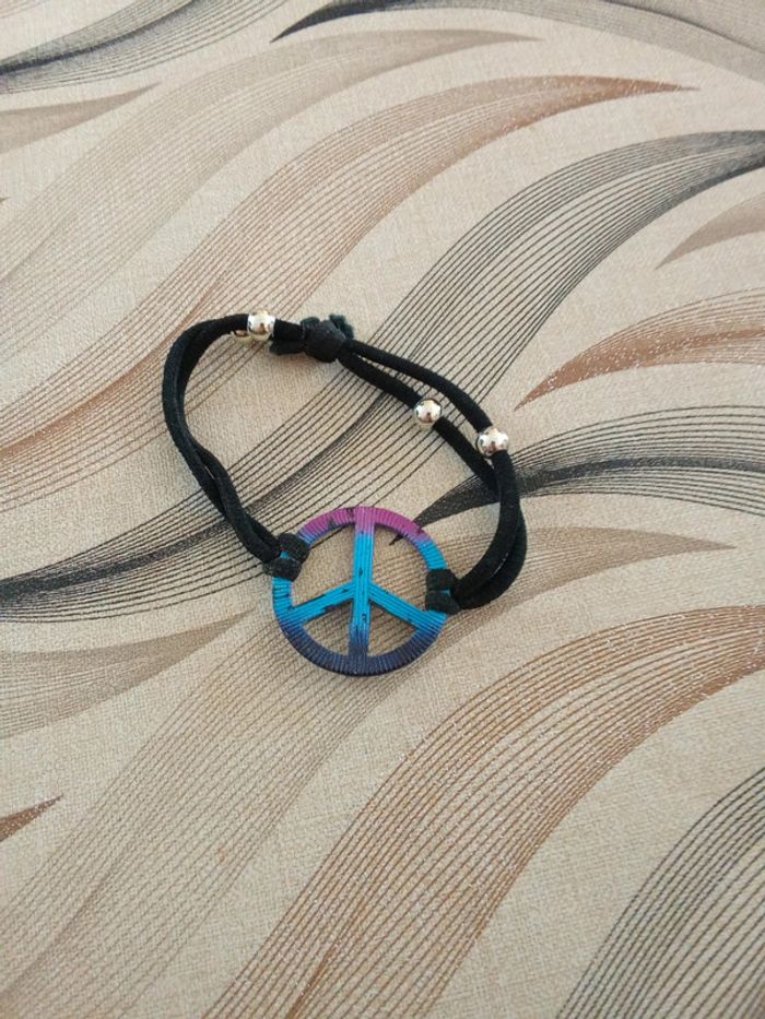 Bracelet élastique réglable motif peace and love - photo numéro 1