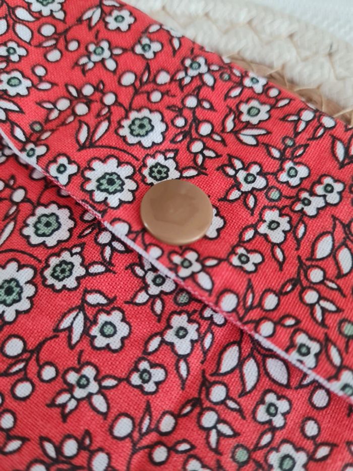 La pochette à savon est l'accessoire indispensable pour ranger vos shampoings solide, savon et cosmétiques. Sa fermeture à rabat laisse passer l'air pour permettre le séchage du savon. Cet étui sera également pratique pour vis déplacements. La pochette se nettoie facilement : un coup de pongé après l'avoir retourné. Passe également en machine à laver. Tissu extérieur: coton Tissu intérieur : coton enduit Résistant à l'eau Bouton pression Dimension 11,5 cm x 12,5 cm environ #tyjalel29400_Etuiasavon