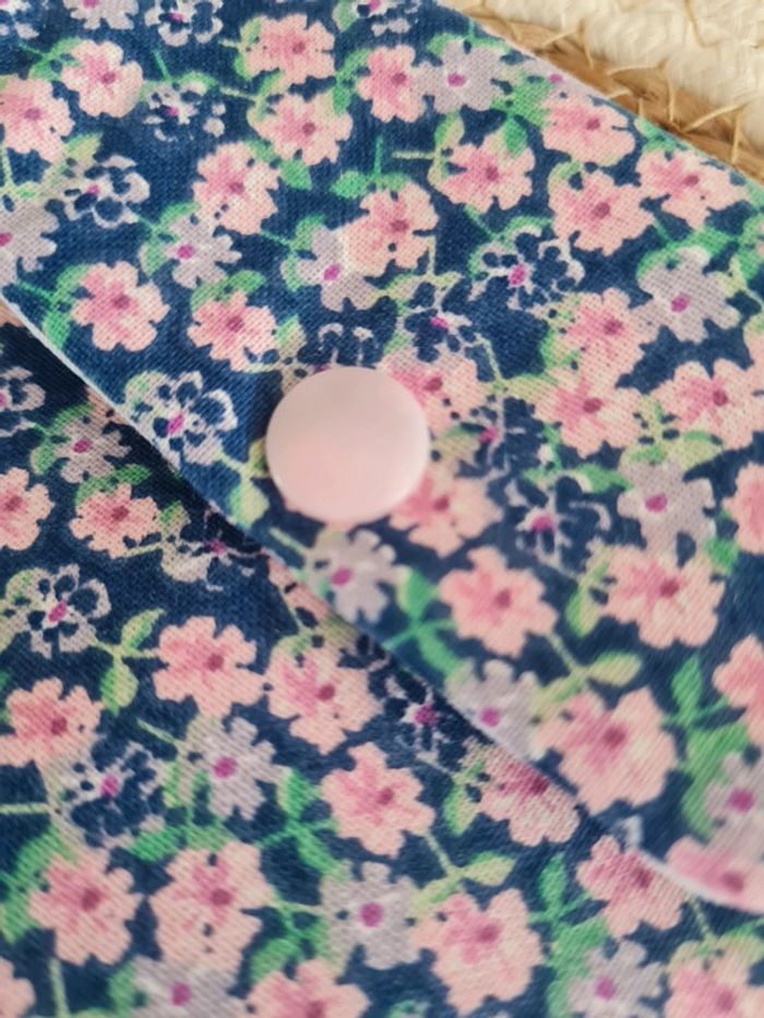 La pochette à savon est l'accessoire indispensable pour ranger vos shampoings solide, savon et cosmétiques. Sa fermeture à rabat laisse passer l'air pour permettre le séchage du savon. Cet étui sera également pratique pour vis déplacements. La pochette se nettoie facilement : un coup de pongé après l'avoir retourné. Passe également en machine à laver. Tissu extérieur: coton Tissu intérieur : coton enduit Résistant à l'eau Bouton pression Dimension 11,5 cm x 12,5 cm environ #tyjalel29400_Etuiasavon