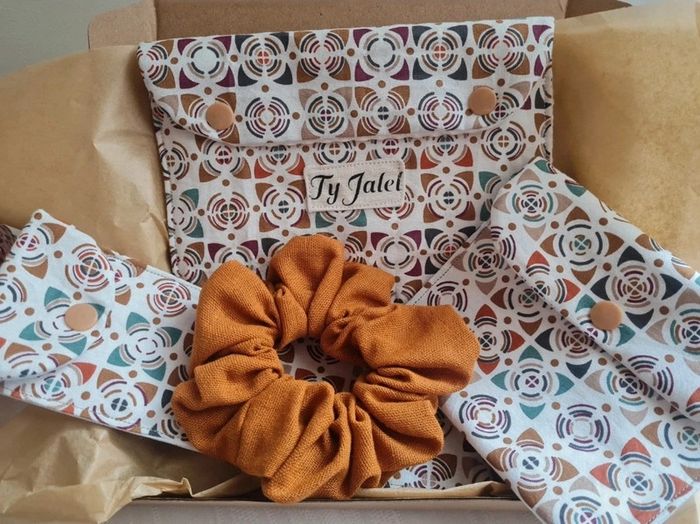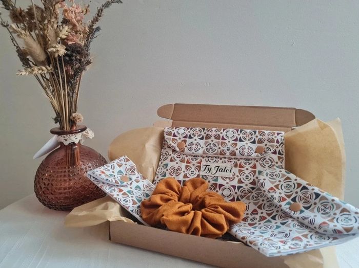 Joli coffret à offrir pour un cadeau original et artisanale 🌸🌺 Ce coffret comprend : Un étui à brosse à dent. Cet étui à brosse à dents est idéal pour emporter votre brosse à dents en déplacement ou en vacances sans mouiller ou tâcher votre trousse de toilette. En coton enduit, elle résiste à l’humidité. La pochette dispose d’un rabat pour envelopper la brosses à dents à l’intérieur en laissant passer l’air et assurer son séchage. Dimensions : 21 x 6 cm environ Résistant à l'eau Bouton pression #tyjalel29400_Etuibrosseadent Lavage à la main ou en machine à 40°C. Un étui à savon: La pochette à savon est l'accessoire indispensable pour ranger vos shampoings solide, savon et cosmétiques. Sa fermeture à rabat laisse passer l'air pour permettre le séchage du savon. Cet étui sera également pratique pour vis déplacements. La pochette se nettoie facilement : un coup de pongé après l'avoir retourné. Passe également en machine à laver. Tissu extérieur: coton Tissu intérieur : coton enduit Résistant à l'eau Bouton pression Dimension 11,5 cm x 12,5 cm environ #tyjalel29400_Etuiasavon Une pochette beauté: Pochette avec un intérieur en coton nid d'abeille Le tissu coton extérieur. Elle trouvera sa place dans votre quotidien, se glisse partout avec son format. Dimension 19 cm x 14,5 cm Vous pourrez y glisser votre maquillage, produits de beauté, stylos, feutres, petites fournitures....et tant d'autres possibilités 🌸 Un chouchou Livré dans sa boîte cadeau 🌺🌸 #tyjalel29400_coffretcadeau