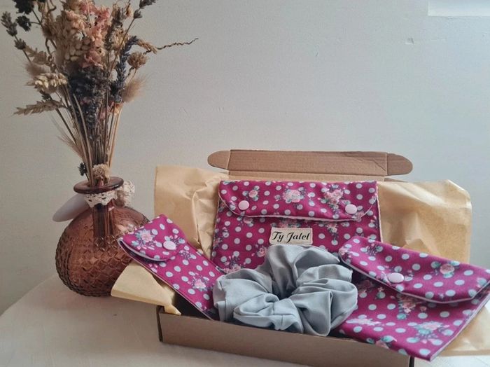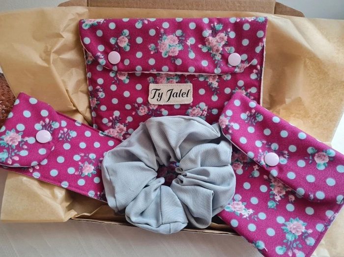 Joli coffret à offrir pour un cadeau original et artisanale 🌸🌺 Ce coffret comprend : Un étui à brosse à dent. Cet étui à brosse à dents est idéal pour emporter votre brosse à dents en déplacement ou en vacances sans mouiller ou tâcher votre trousse de toilette. En coton enduit, elle résiste à l’humidité. La pochette dispose d’un rabat pour envelopper la brosses à dents à l’intérieur en laissant passer l’air et assurer son séchage. Dimensions : 21 x 6 cm environ Résistant à l'eau Bouton pression #tyjalel29400_Etuibrosseadent Lavage à la main ou en machine à 40°C. Un étui à savon: La pochette à savon est l'accessoire indispensable pour ranger vos shampoings solide, savon et cosmétiques. Sa fermeture à rabat laisse passer l'air pour permettre le séchage du savon. Cet étui sera également pratique pour vis déplacements. La pochette se nettoie facilement : un coup de pongé après l'avoir retourné. Passe également en machine à laver. Tissu extérieur: coton Tissu intérieur : coton enduit Résistant à l'eau Bouton pression Dimension 11,5 cm x 12,5 cm environ #tyjalel29400_Etuiasavon Une pochette beauté: Pochette avec un intérieur en coton nid d'abeille Le tissu coton extérieur. Elle trouvera sa place dans votre quotidien, se glisse partout avec son format. Dimension 19 cm x 14,5 cm Vous pourrez y glisser votre maquillage, produits de beauté, stylos, feutres, petites fournitures....et tant d'autres possibilités 🌸 Un chouchou Livré dans sa boîte cadeau 🌺🌸 #tyjalel29400_coffretcadeau