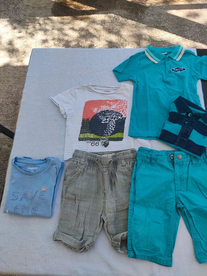 2 petites taches sur 2 t-shirts. Se voient guère. Super lot pour cet été #azur1987garcon3ans