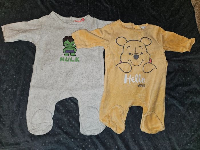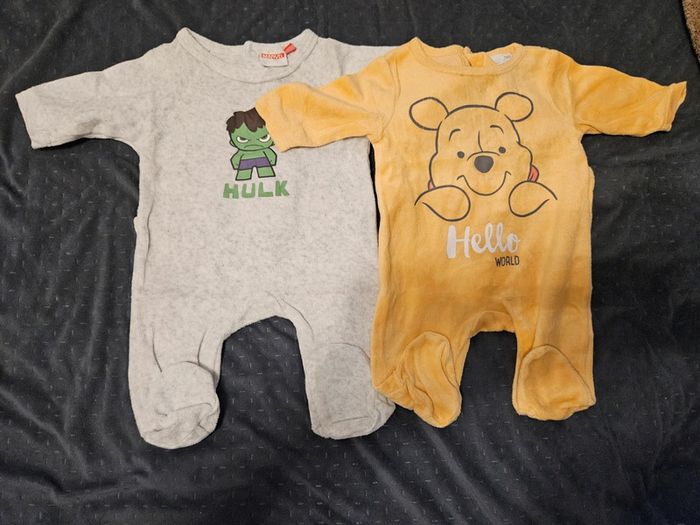 Lot de 2 pyjamas en velours en très bon état Taille 0 et 1 mois