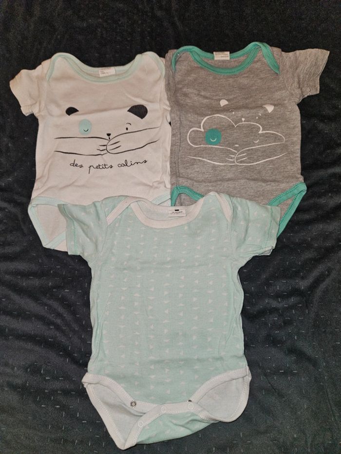 Lot de 3 bodys en très bon état (légères traces possibles au niveau du col) Taille 3 mois