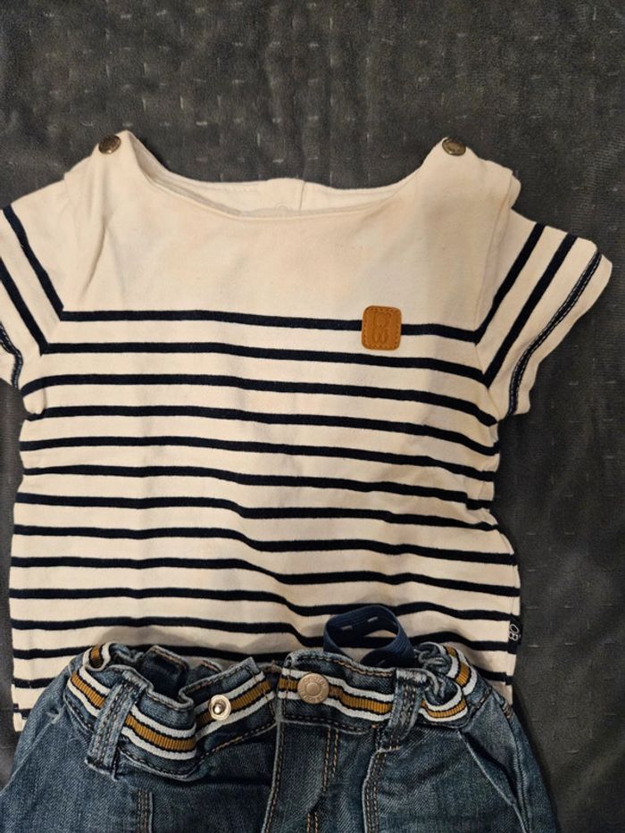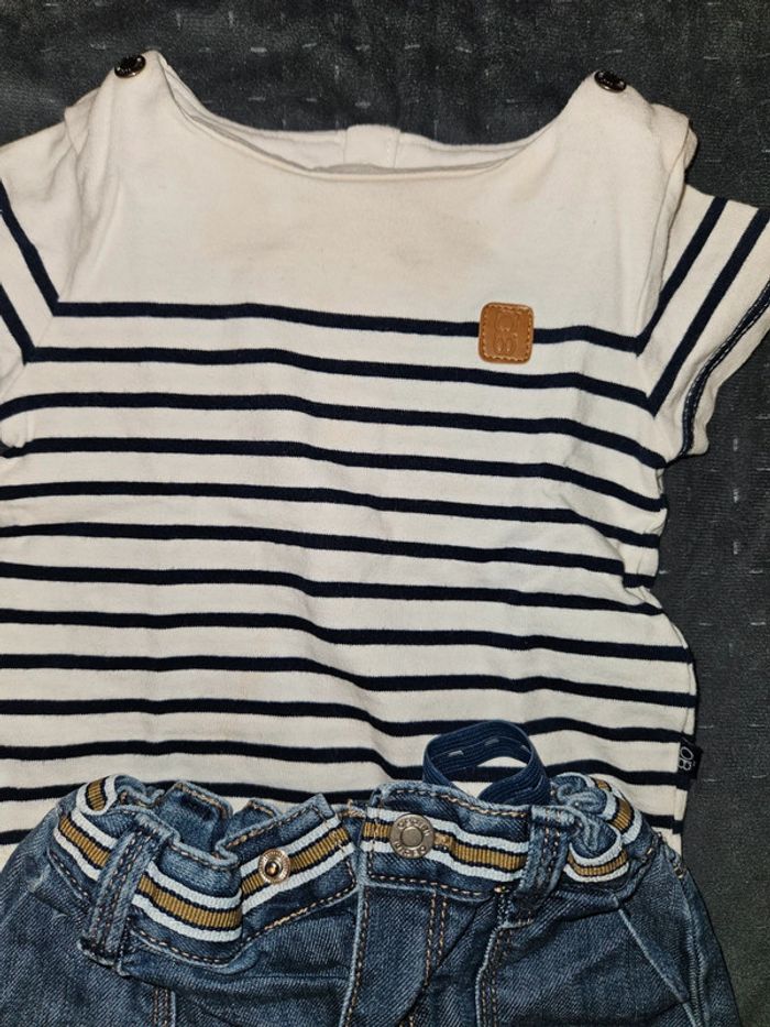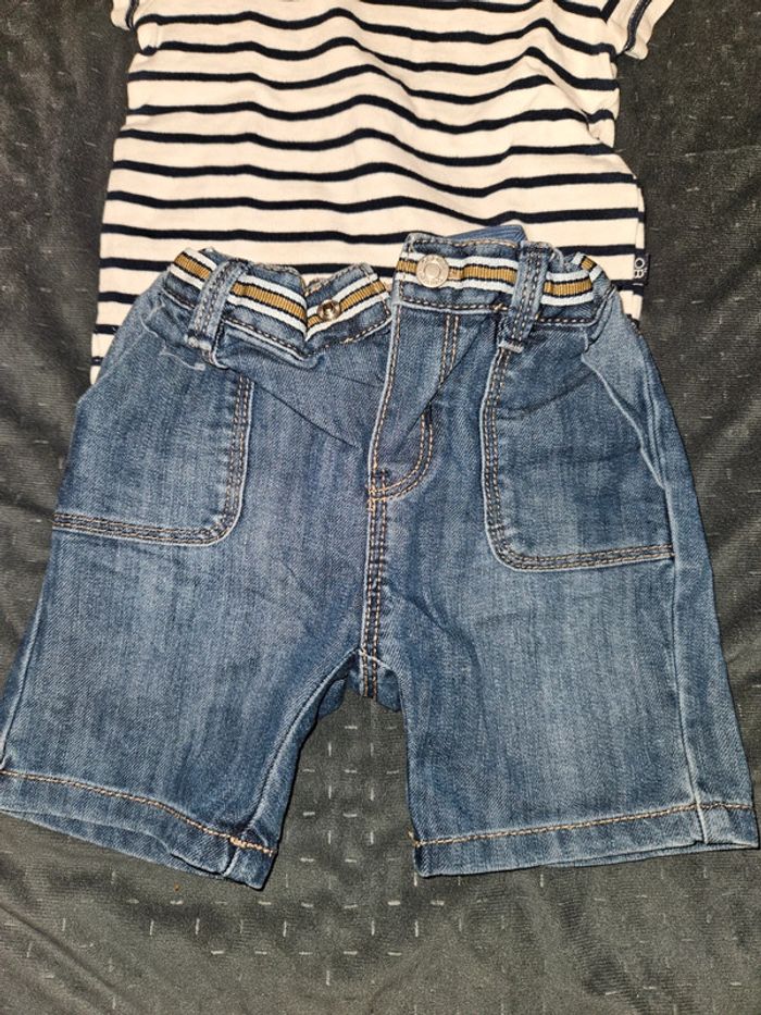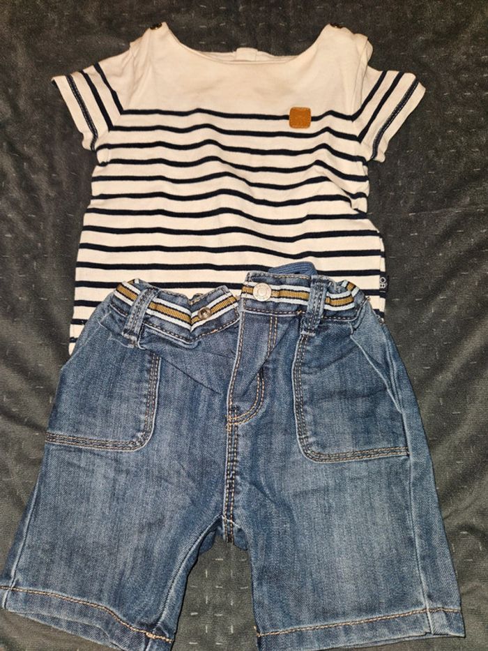 Ensemble short en très bon état et t-shirt avec tâches jaunes sur le col Taille short 6 mois et t-shirt 3 mois