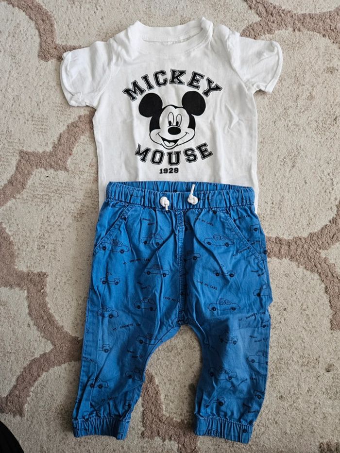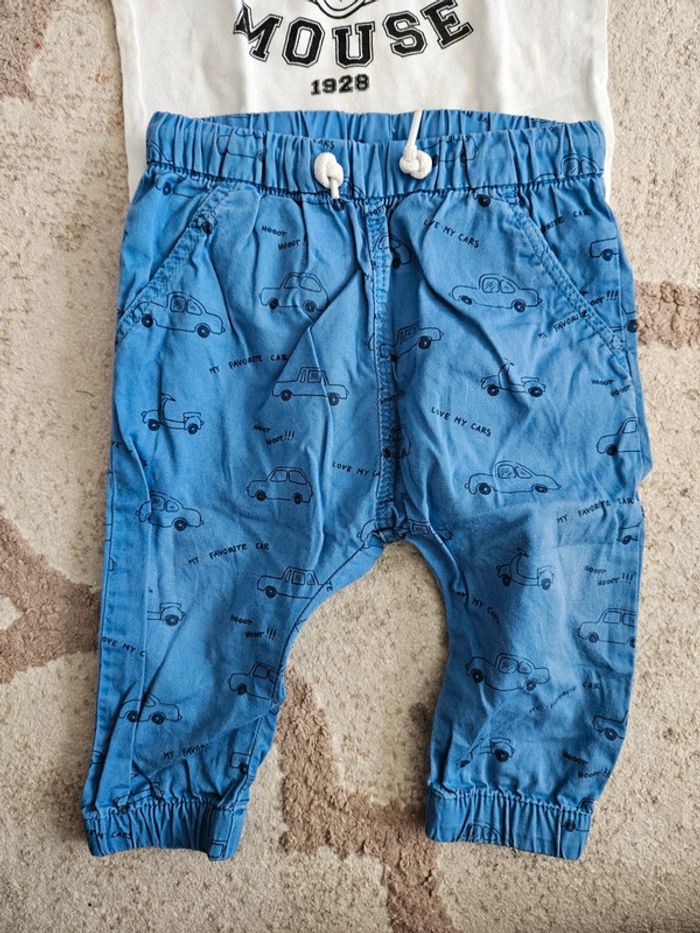 Pantalon et t-shirt en très bon état T-shirt légèrement tâché sur le col Taille 6/9 mois