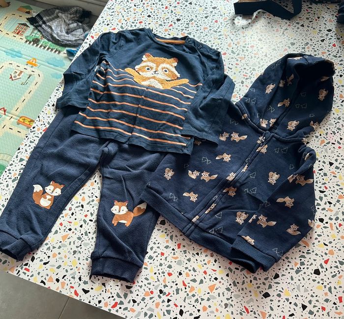 Tenue petit renard comprenant pantalon, t-Shirt manches longues et veste zips à capuche de marque in extenso en taille 18 mois. En excellent état. #amelie18moisbebegarcons