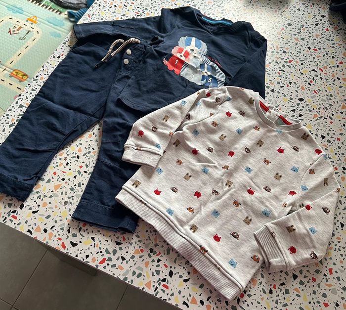 Lot comprenant un pull, un t-shirt manches longues et un pantalon de marque obaïbi en taille 18 mois en excellent état #amelie18moisbebegarcons