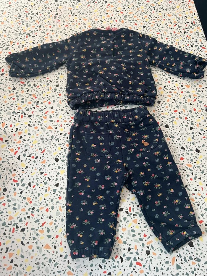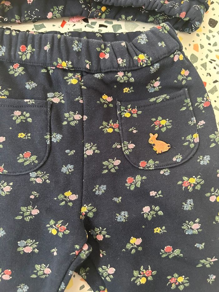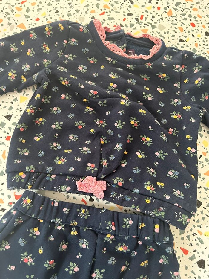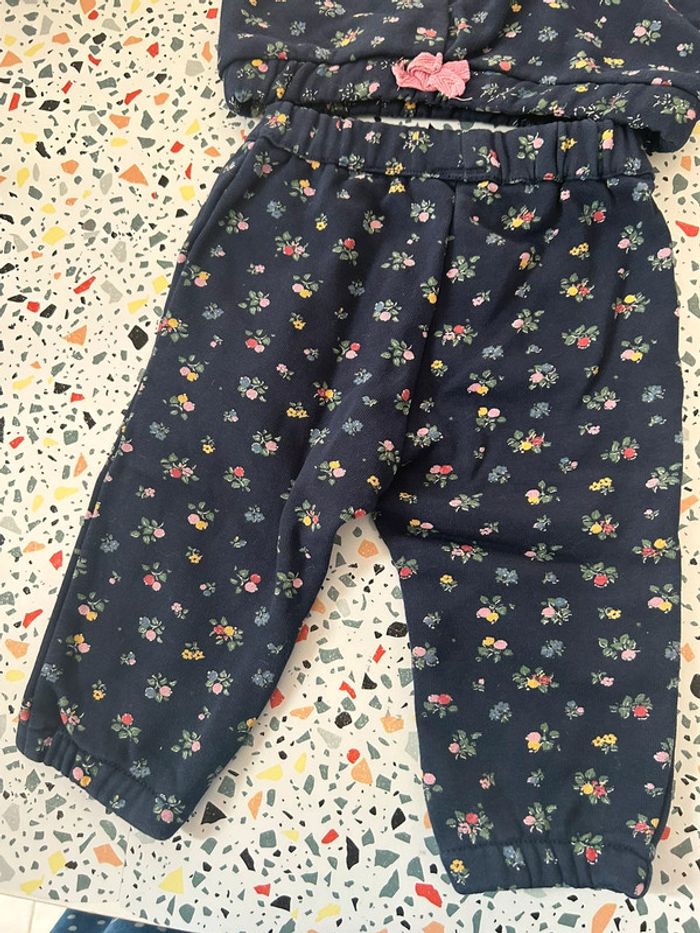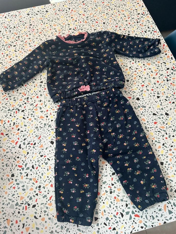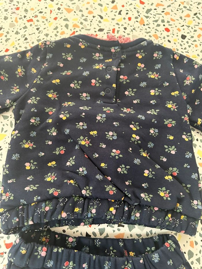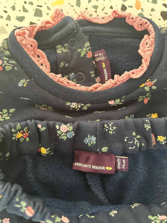 Ensemble pull et pantalon Sergent Major en taille 12 mois. De couleur bleu marine avec motifs petites fleurs en parfait état. #amelie12moisbebefilles #ameliesergentmajor