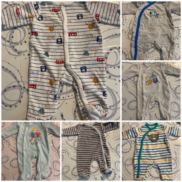 Lot de 6 pyjamas taille 1 mois dont 4 velours et 2 coton en parfait état #amelie1moisbebegarcons