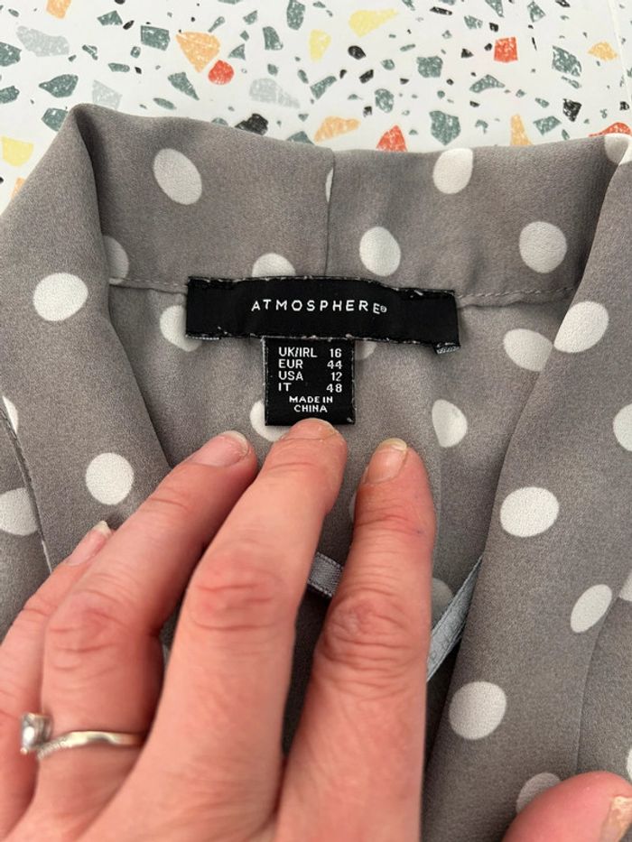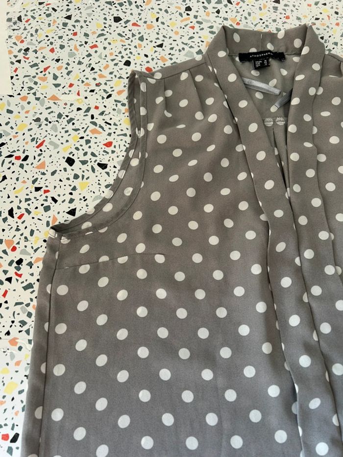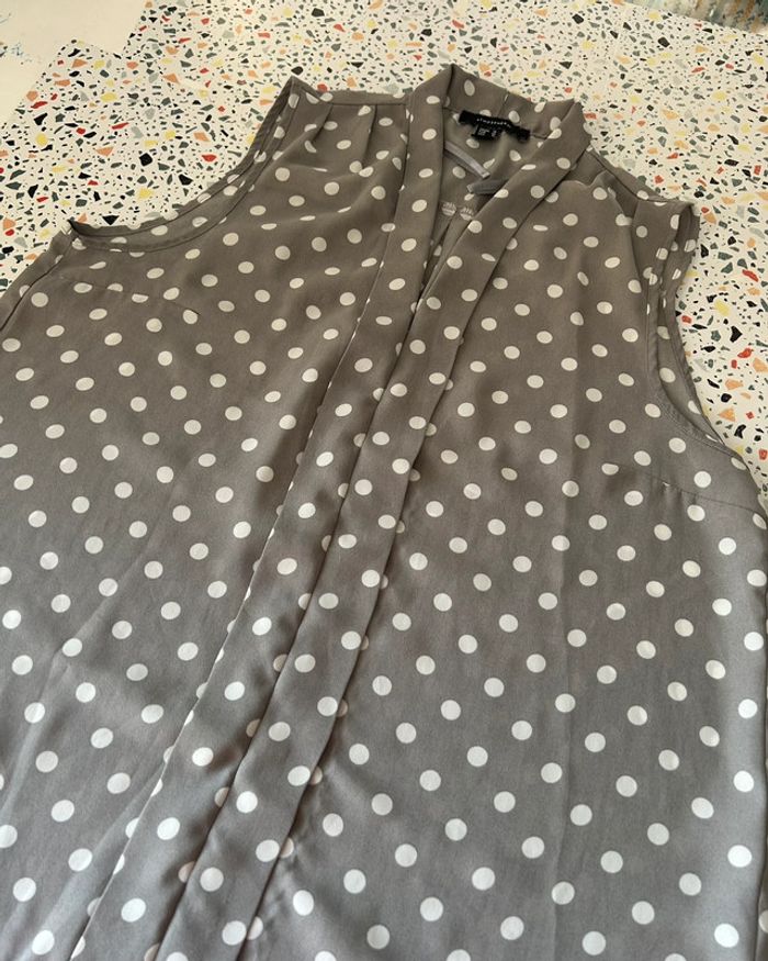 Jolie blouse sans gris à pois blanc en parfait état De marque primark En taille 44 #amelievetementfemme