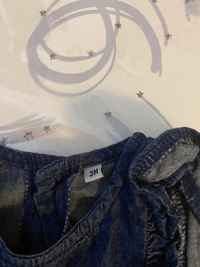 Ensemble salopette style jean avec t-shirt blazer col Clotilde taille 3 mois en excellent état #amelie3moisbebefilles