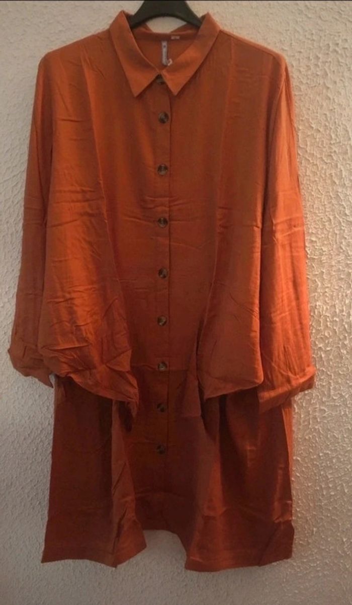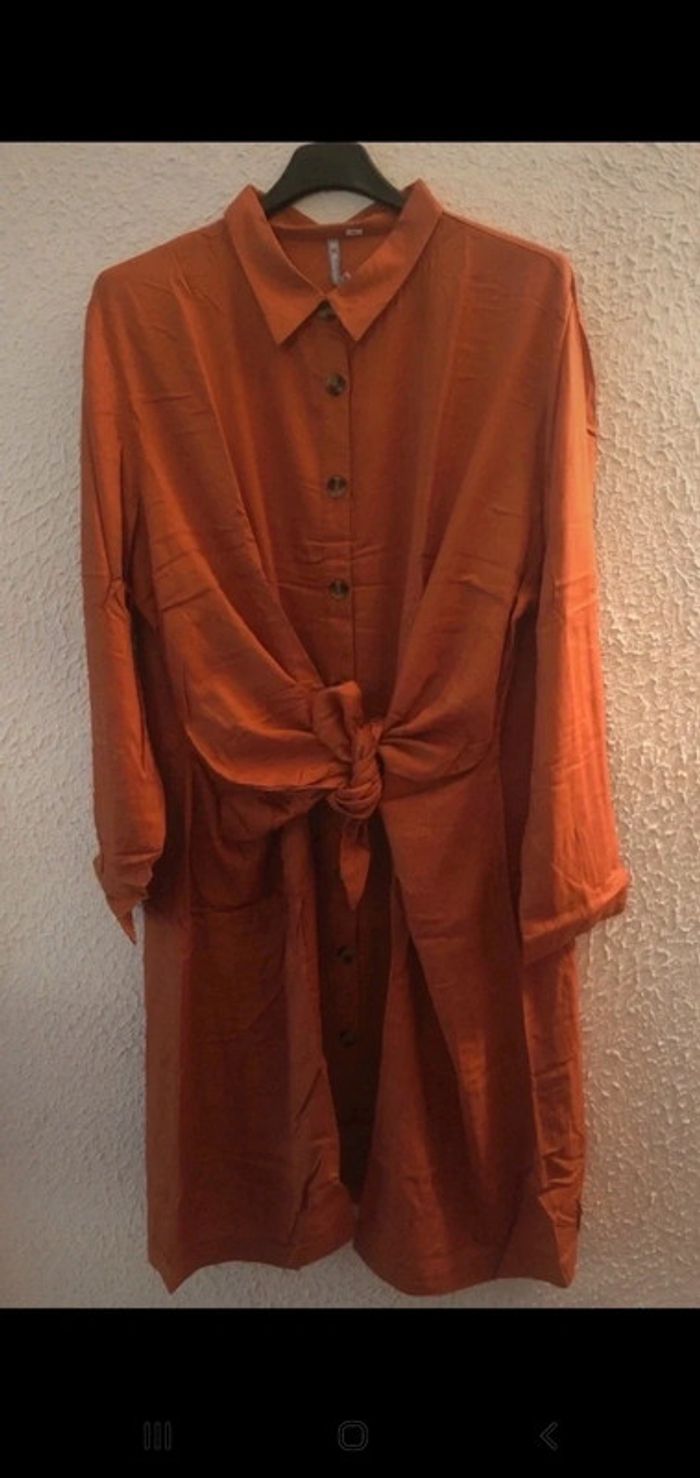 Robe chemise à pans. A porter avec pans noués ou pas selon vos envies. Composition : 100% viscose Neuve jamais portée Taille : 56 Coloris : paprika Prix 20€ #sisterkayafemmeT56 Réf : c.ed +1