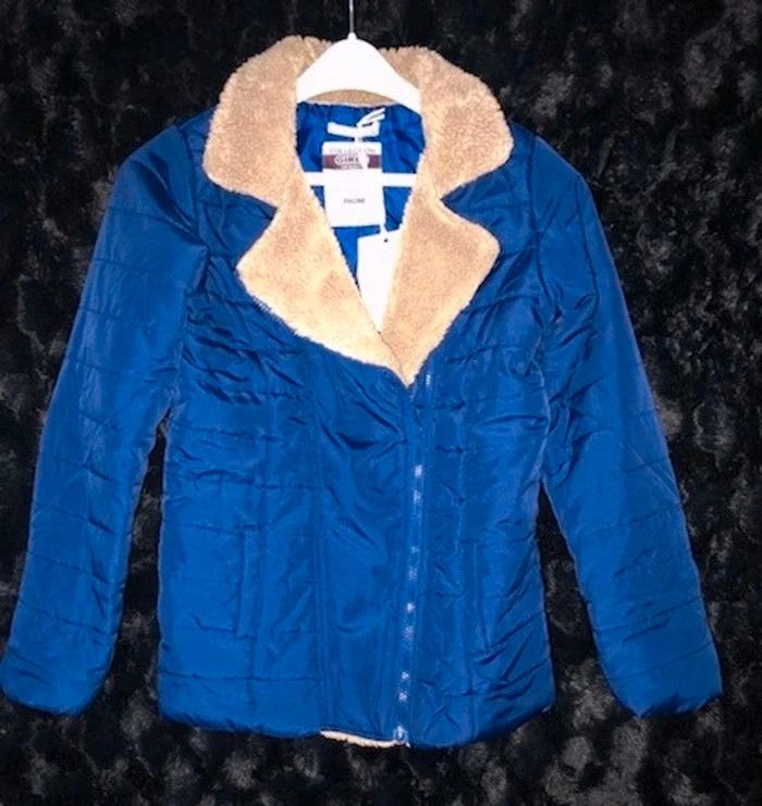 Doudoune courte zippée - Col tailleur et ouverture devant doublés fausse fourrure - Ouverture côté zippée - 2 poches côtés passepoilées - Manches longues avec poignets intérieurs en côtes - Découpes princesse devant et dos - Entièrement doublée et ouatinée Coloris : bleu Taille : 12 ans Prix : 15 € Neuve jamais portée #sisterkayafille12ans Réf : B.00 - 3S