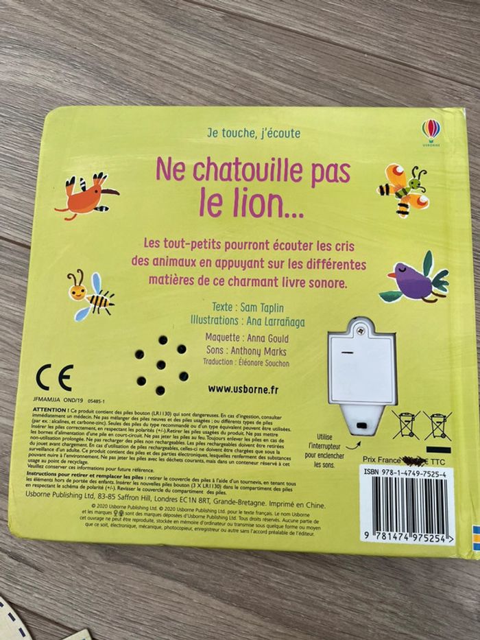 Fonctionne parfaitement. Avec piles Permet de découvrir le cri du lion du zèbre de l’éléphant et du buffle