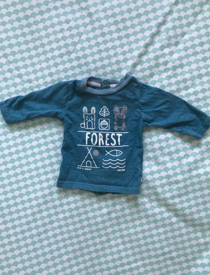 #dressing_garcon1mois_oreelii T-shirt en coton manches longues, taille 1 mois. Fermeture par pressions dans le dos, très pratique pour les tout-petits.
