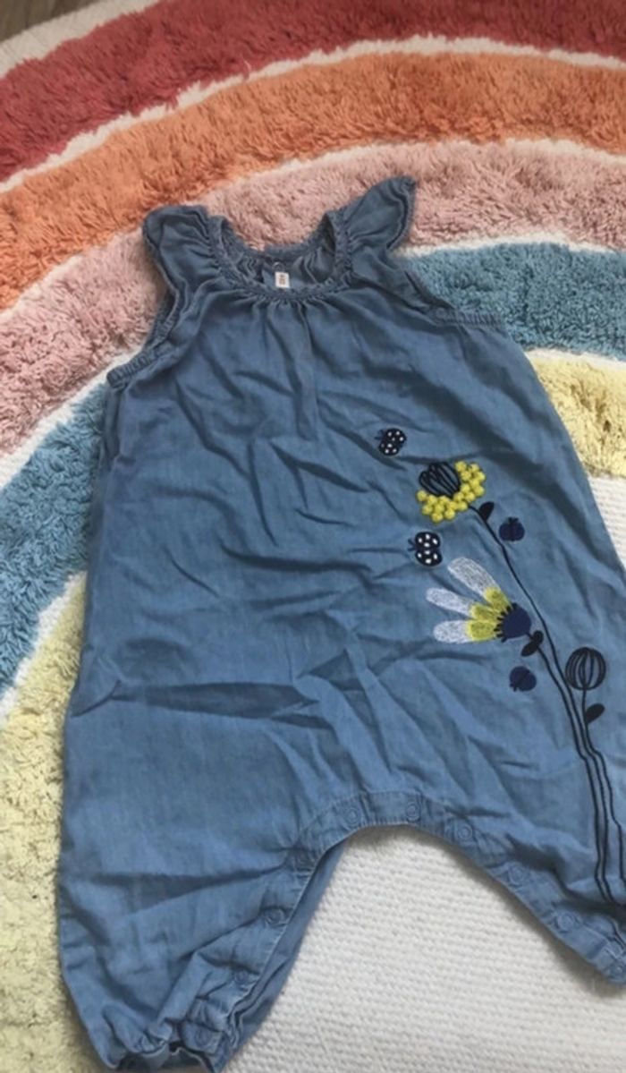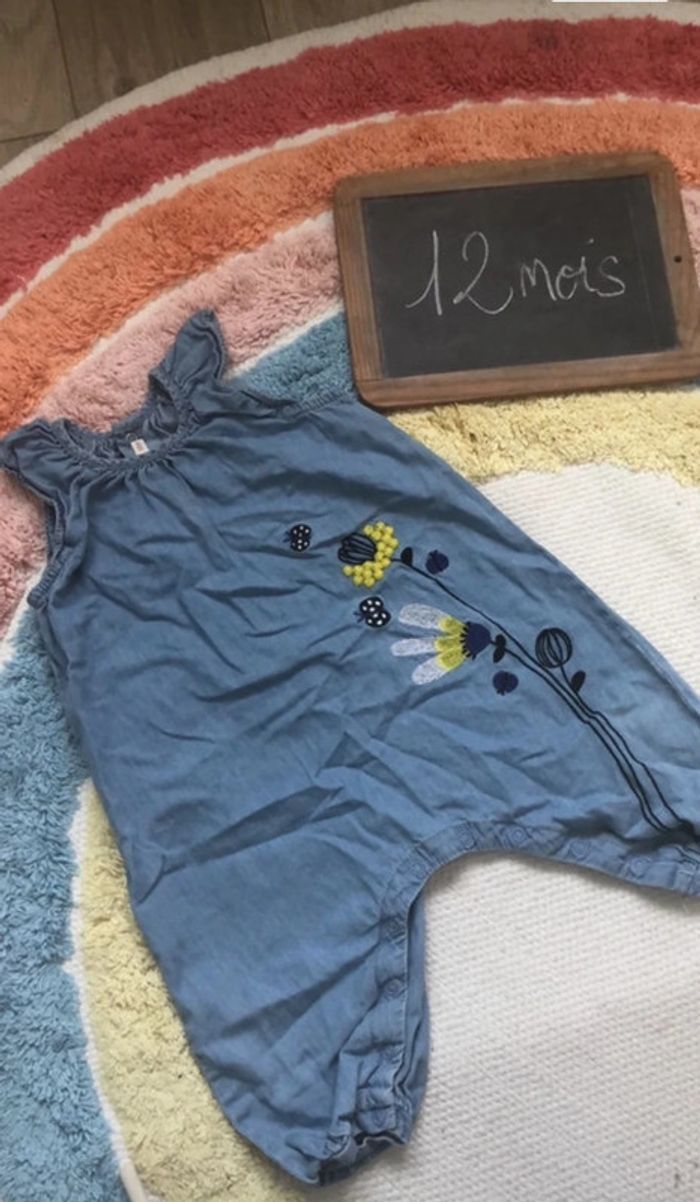 #dressing_fille12mois_oreelii Combinaison salopette en jean très fin catimini. Magnifique portée. Taille 12 mois. Légèrement tachée au niveau du col mais ne se voit pas une fois portée. Broderie fleurs et coccinelles
