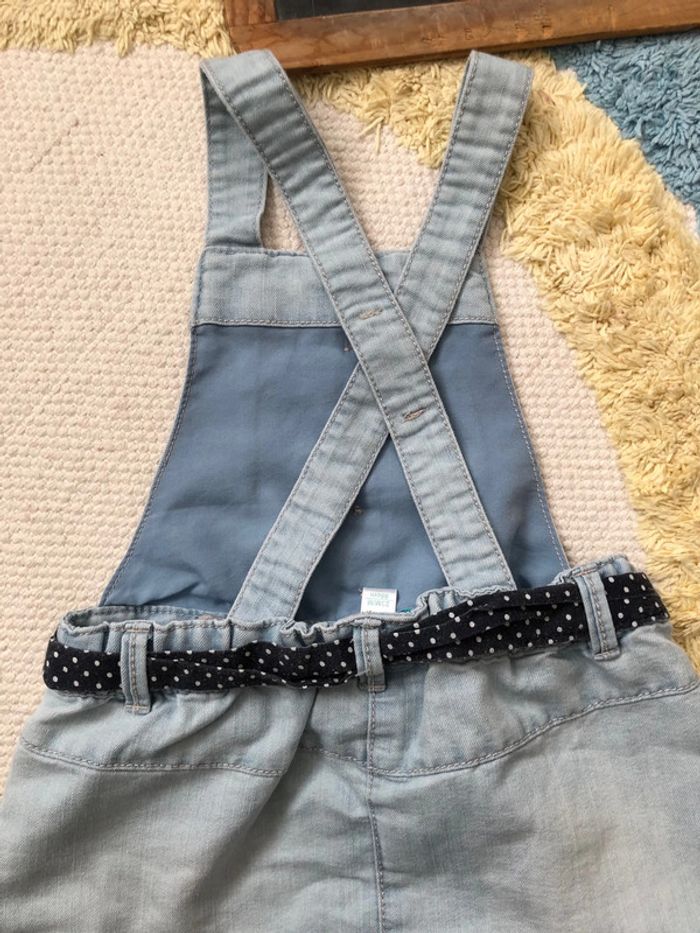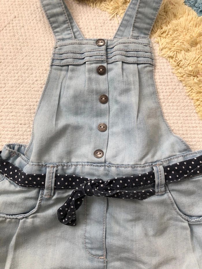Robe salopette en jean okaidi avec ceinture foulard. Bretelles croisées dans le dos et ajustables #dressing_fille2ans_oreelii