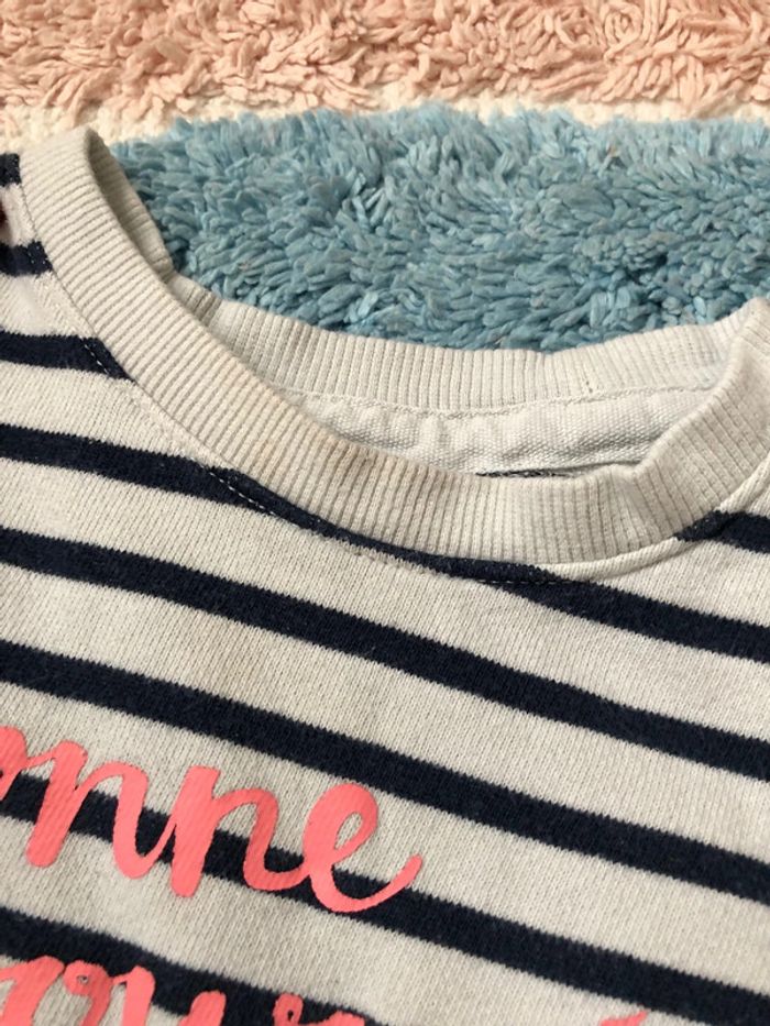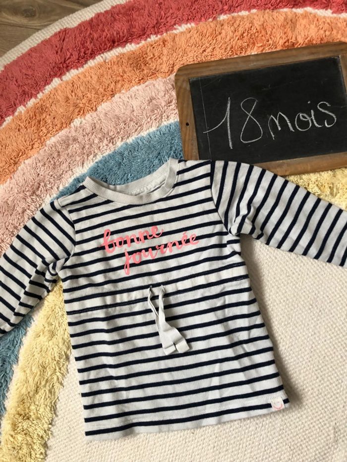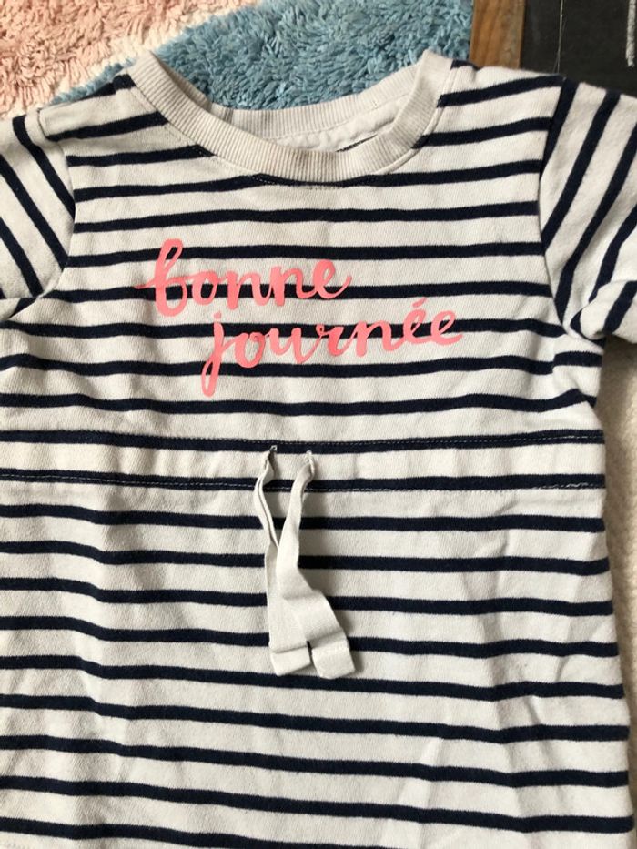 Robe courte à rayures parfaite avec un legging. Légère tache au col, voir photo. #dressing_fille18mois_oreelii