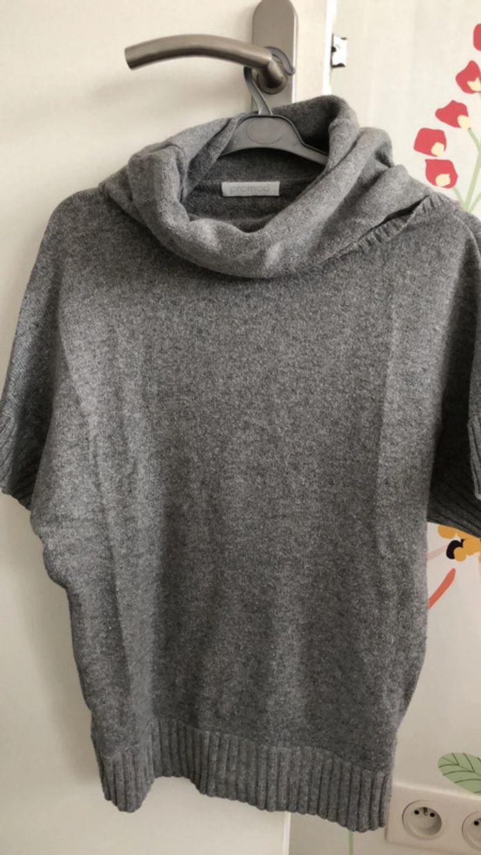 Pull gris manches courtes, col large, taille 36, étiquette coupée. Promod #dressing_36_oreelii