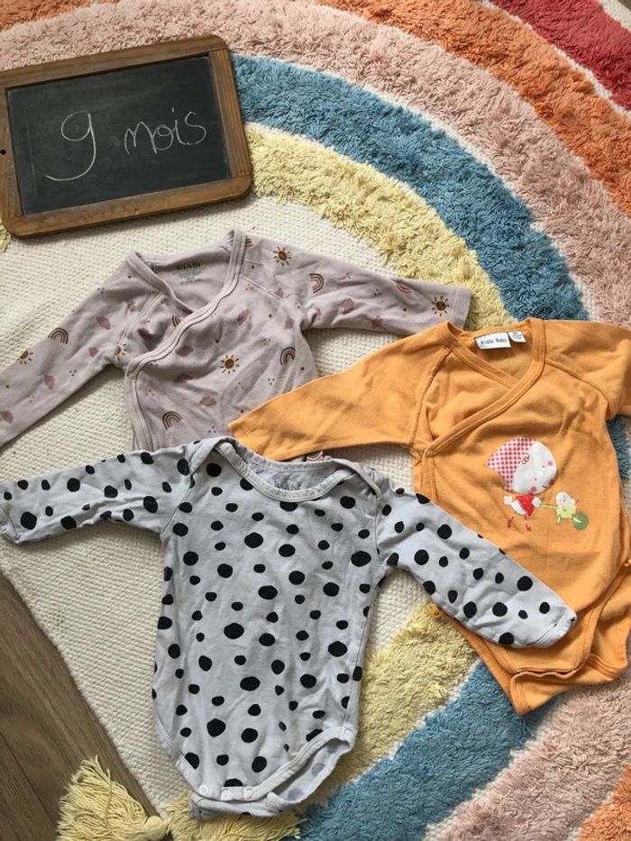 Lot 3 bodies manches longues taille 9 mois. Seul le noir et blanc a un petit défaut, voir photo. #dressing_fille9mois_oreelii