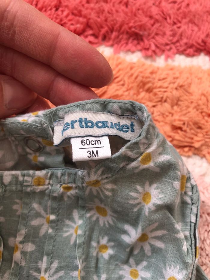 Combinaison salopette a fleurs Vertbaudet taille 3 mois très jolie. Couleur vert d’eau #dressing_fille3mois_oreelii