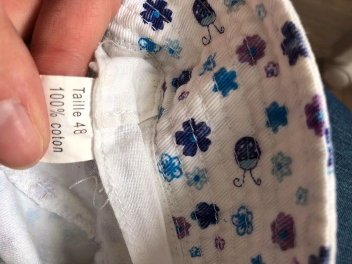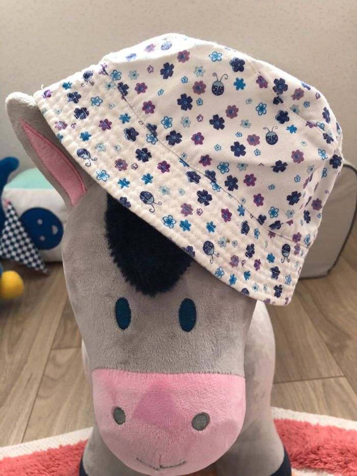 Chapeau été fleurs et coccinelles, tour de tête 48cm
