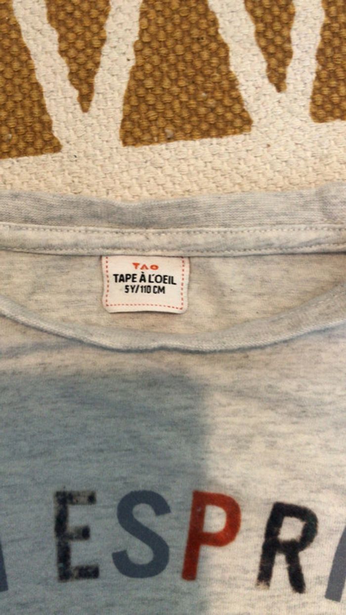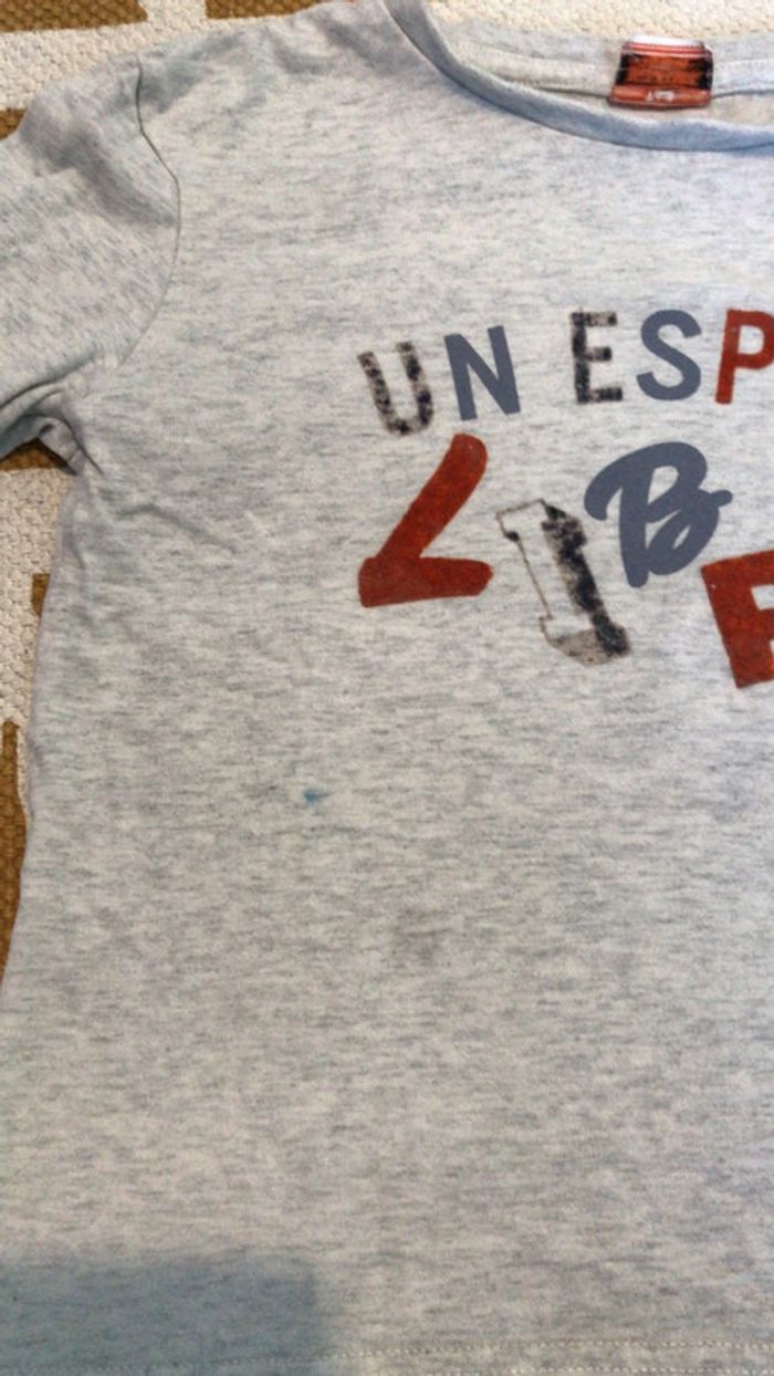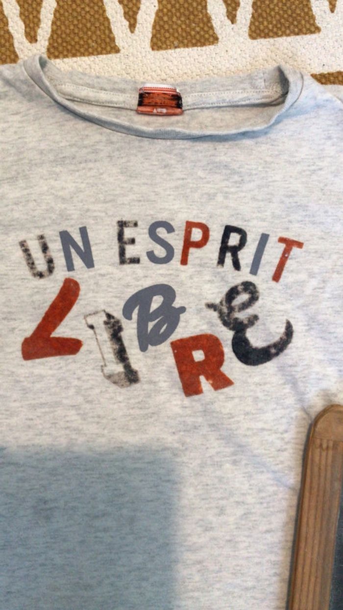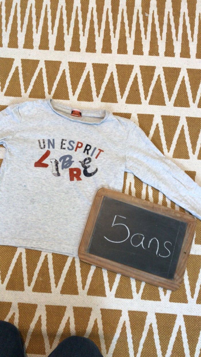 #dressing_garcon5ans_oreelii T-shirt manches longues taille 5ans. Les lettres en velours se sont un peu abimees avec les lavages et il y a un petit point de feutre bleu au niveau du ventre voir photo