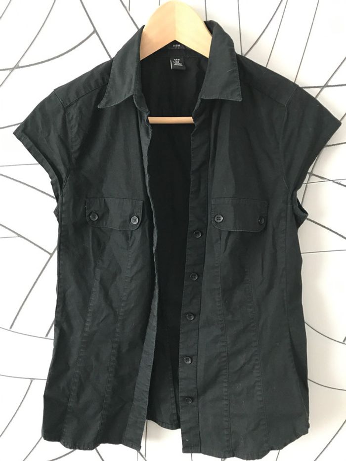 #dressing_38_oreelii Vends chemisier manches courtes H&M noir. 2 petites poches sur poitrine. Taille 38