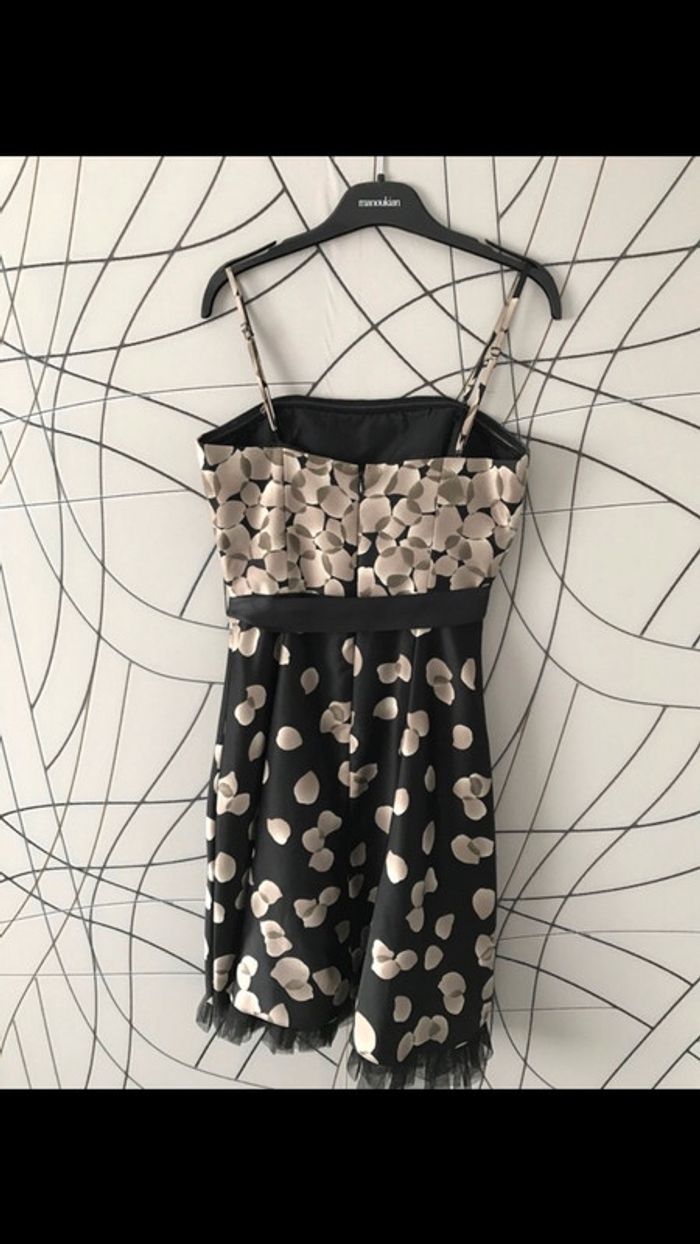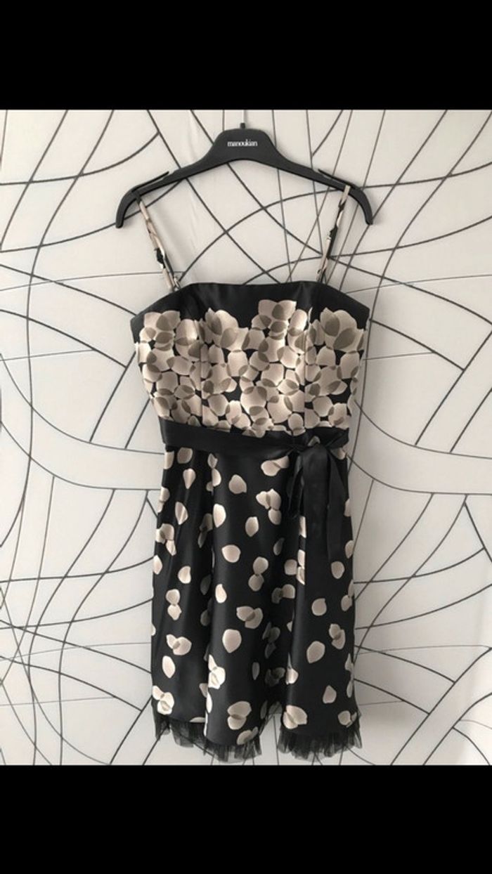 robe de soirée bustier satinée à pétales Manoukian avec ceinture satinée. Portée une fois, état comme neuve. Bretelles amovibles. Petit crochet de bretelle cassé (voir photo) mais peut être utilisée sans ou possibilité de l’accrocher avec une petite épingle sans que ça se voit. Jupon de satin, finition en tulle. Taille 34. idéale pour événement, mariage ou fête #dressing_34_oreelii